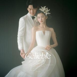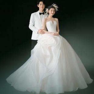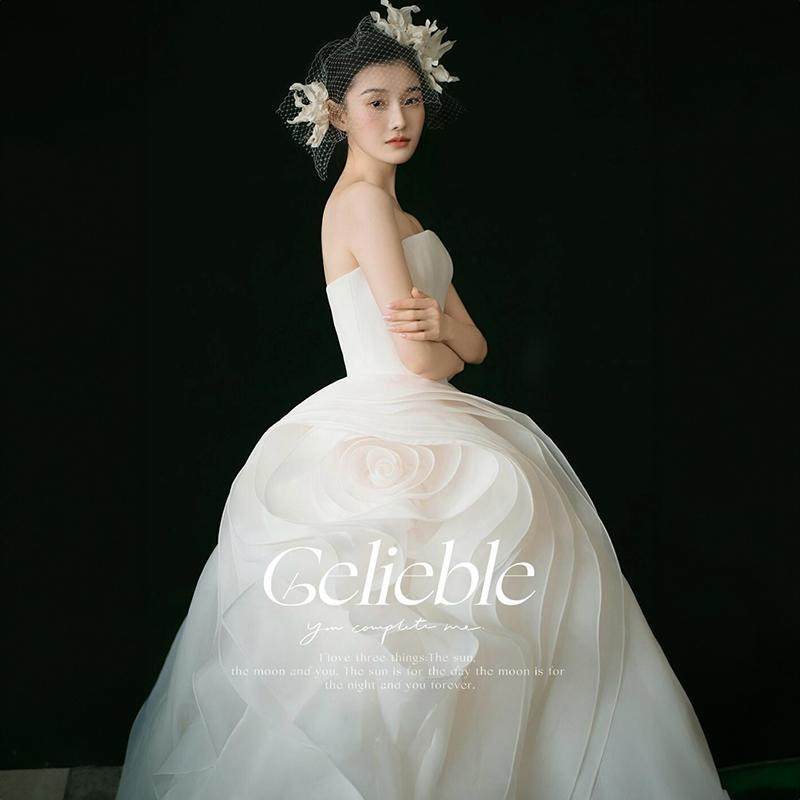 法式 抹胸婚纱女高级感绝美优雅重工气质花朵拖尾主纱新娘出门纱