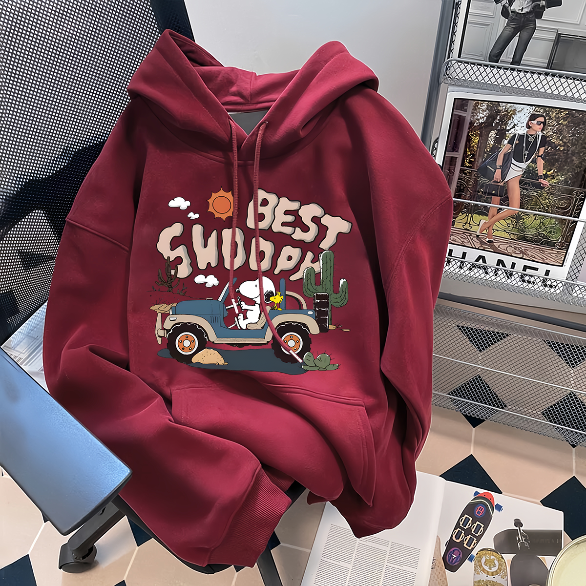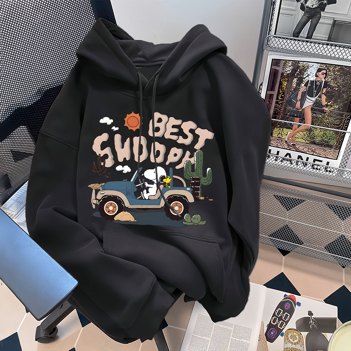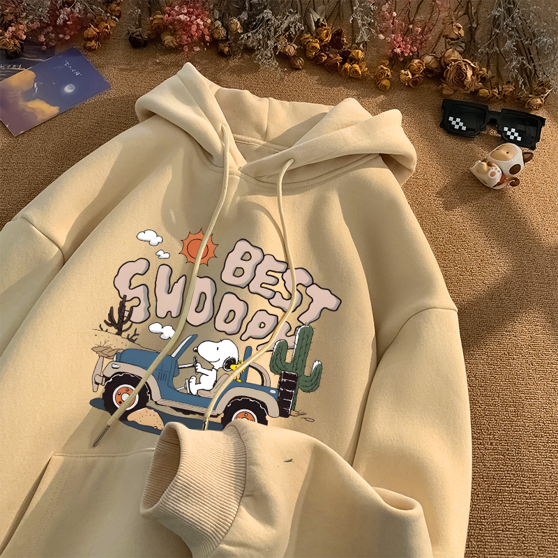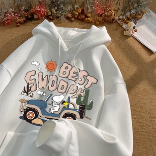 银狐绒港风潮流卡通史努比连帽卫衣情侣装 上衣男女 ins休闲秋冬季