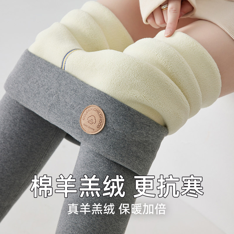 外内穿纯秋裤 加绒加厚高腰紧身保暖裤 女冬季 小个子棉羊羔绒打底裤
