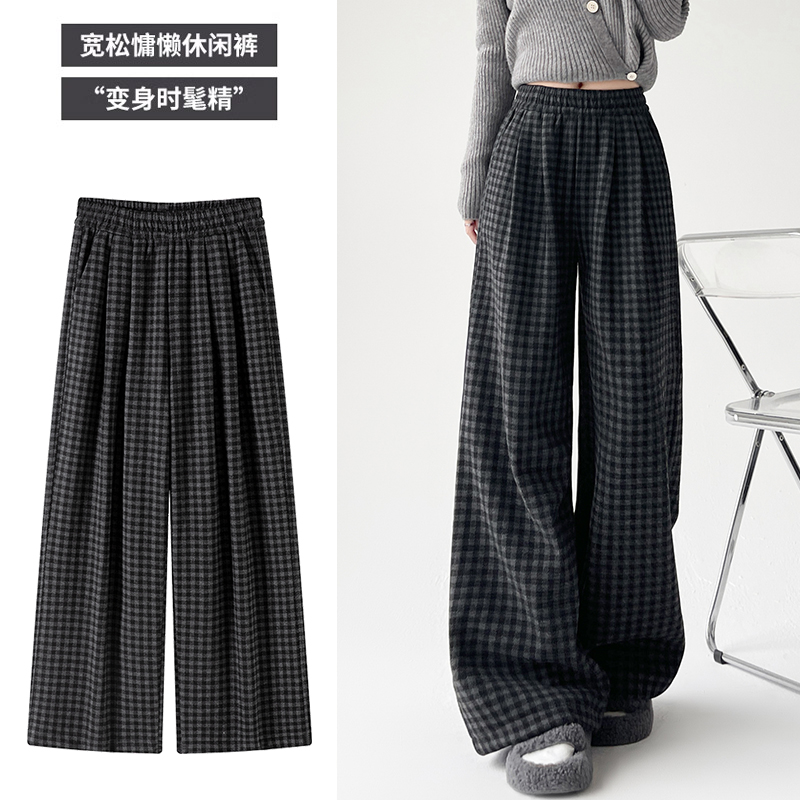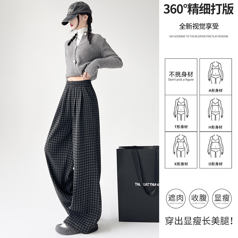 子 宽松垂感梨形身材显瘦直筒裤 灰色糯米休闲裤 女秋冬加绒胖mm大码
