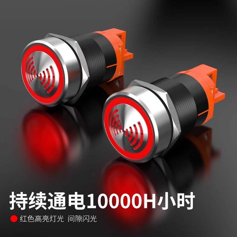 蓝波新品 22mm金属闪光蜂鸣器报警器不锈钢头部高亮LED红色发光12V