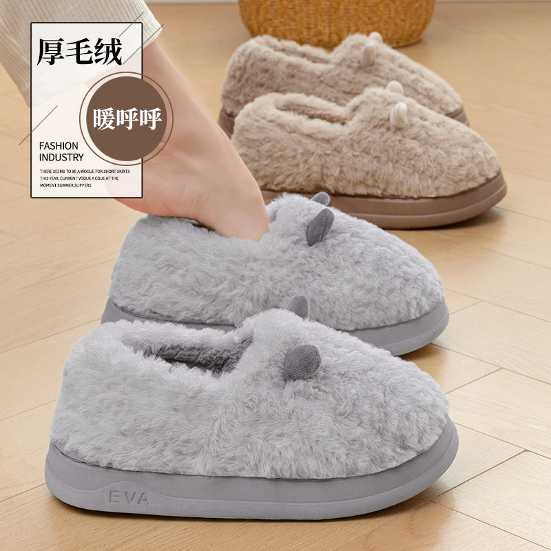 室内家居家厚底保暖毛绒包跟月子棉鞋 棉拖鞋 新款 2025秋冬季 女 女款