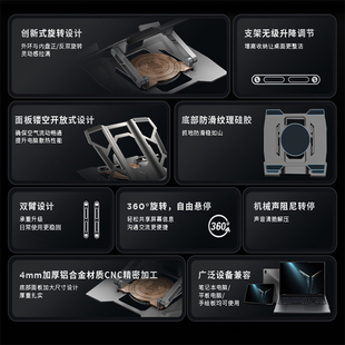 联想拯救者雪刃旋转支架Z7斗战士笔记本电脑游戏办公升降调节可旋转站桌面铝合金悬空散热底座 360°旋转