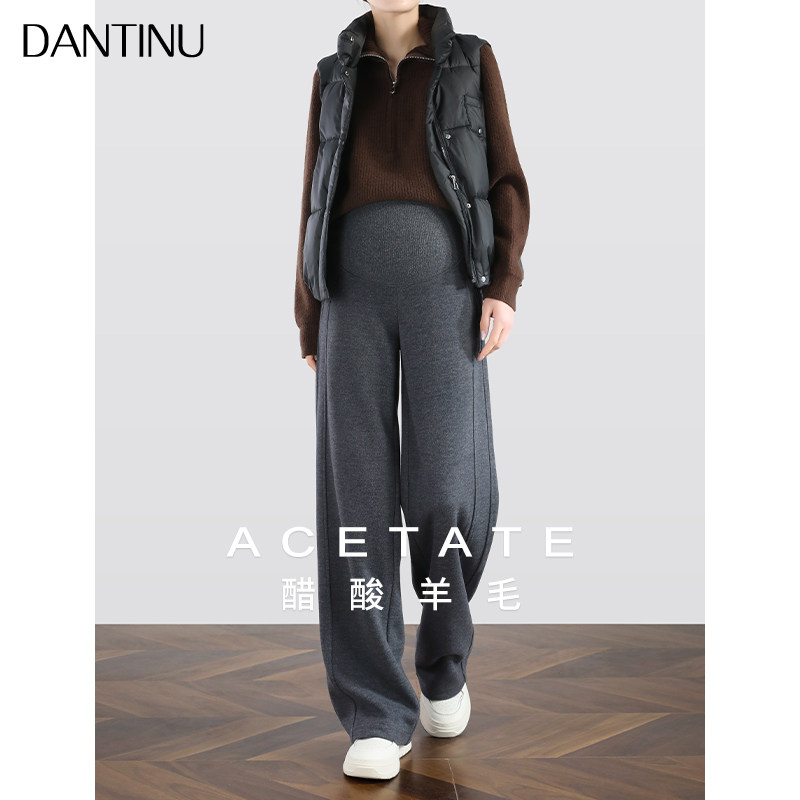 直筒宽松拖地阔腿裤 外穿托腹大码 秋冬加绒加厚冬季 孕妇弯刀休闲裤