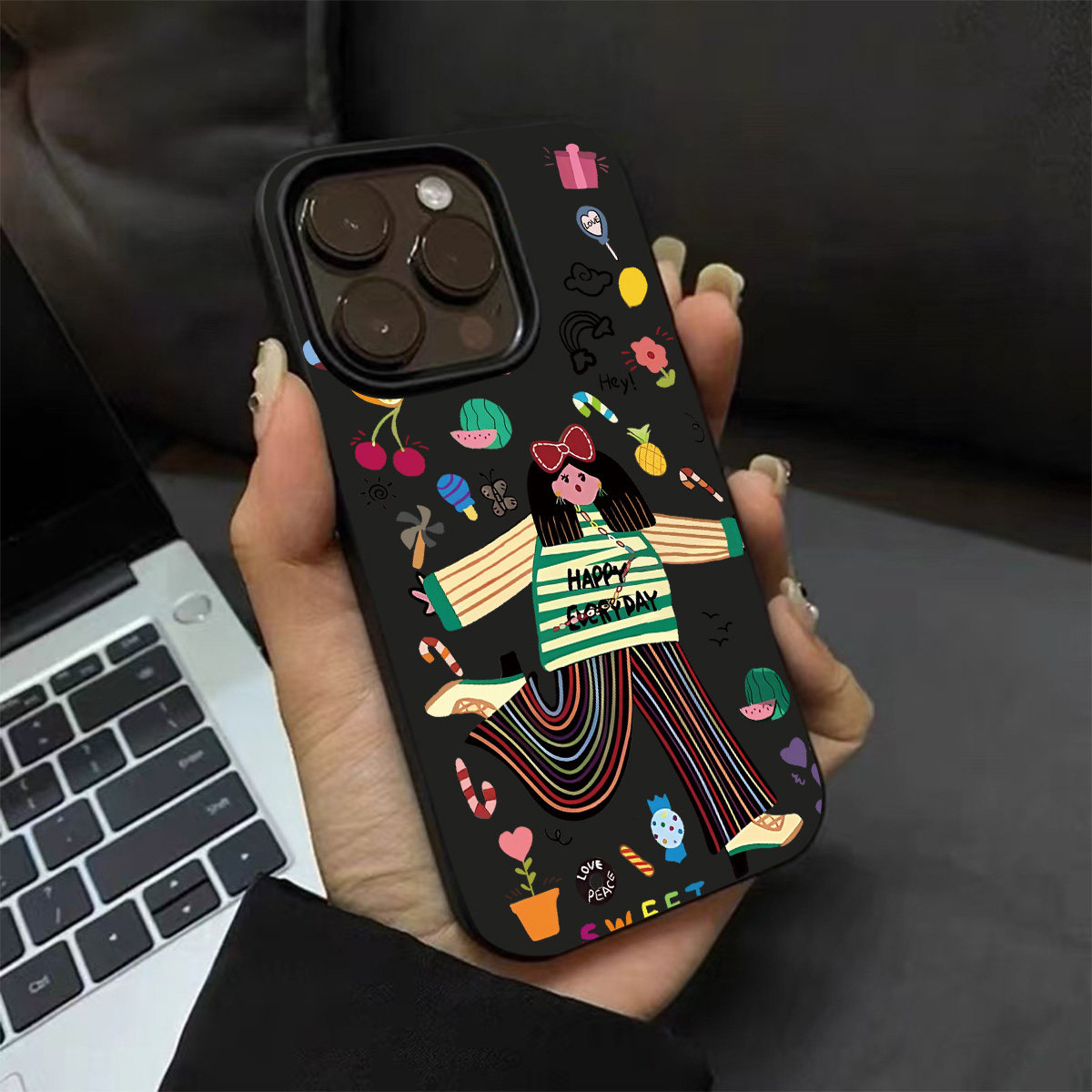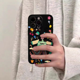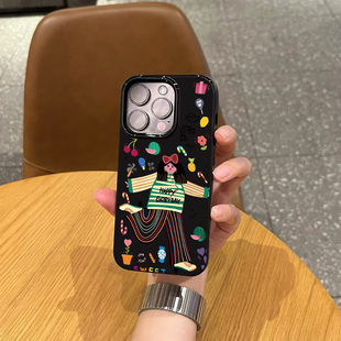 原创小众高级感快乐女孩适用苹果17promax不会撞壳手机壳新款 iphone15亮黑色17pro磨砂13女12硅胶16全包防摔