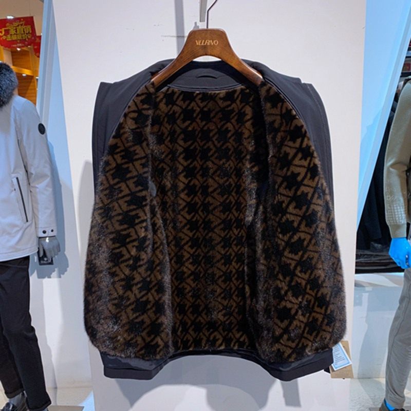 深蓝翻领 皮草 可脱卸水貂内胆 男士 尼克服 保暖百搭通勤 冬装