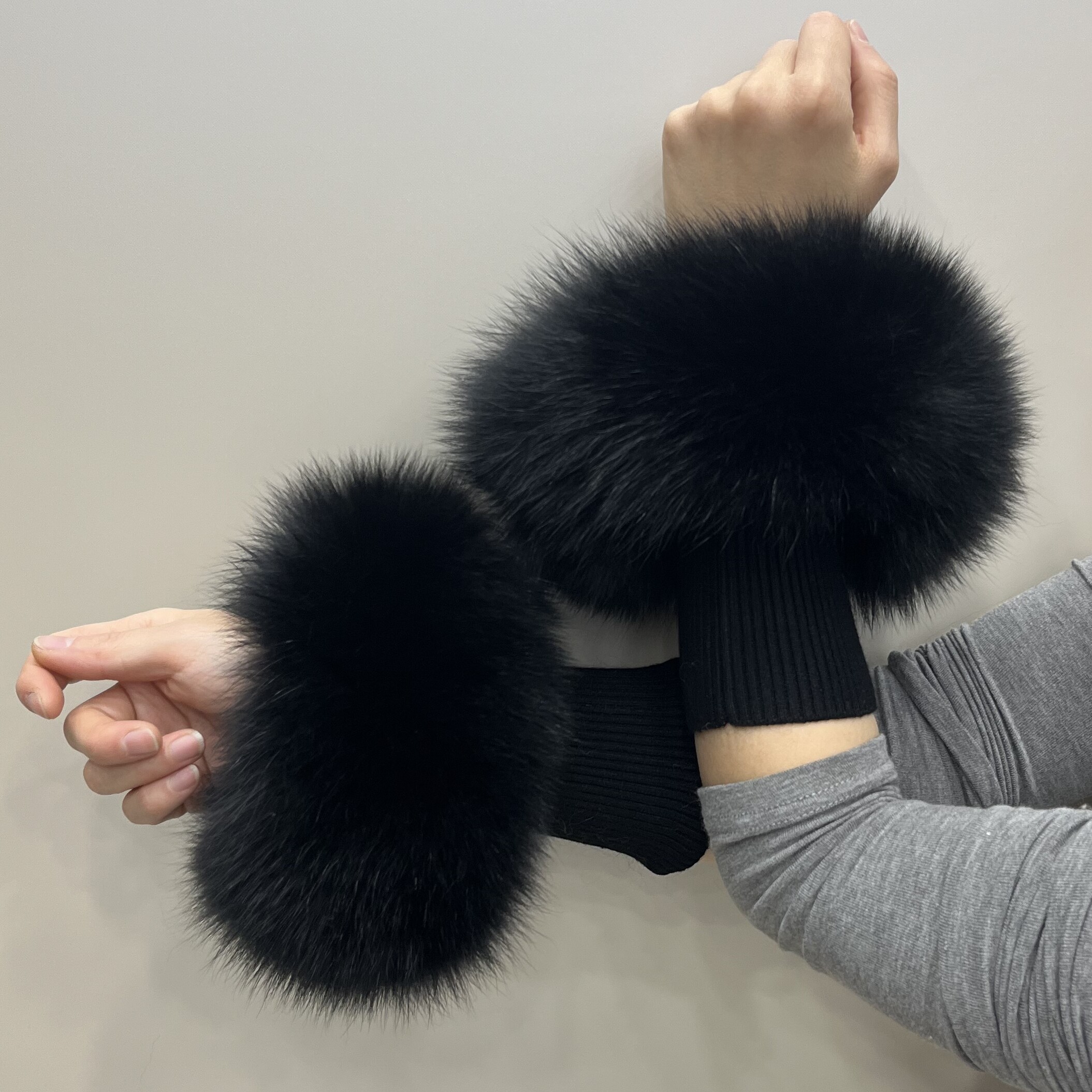 鞋 套手腕套毛毛定做袖 套单买毛圈 口拍拍圈袖 狐狸皮整张真狐狸毛袖