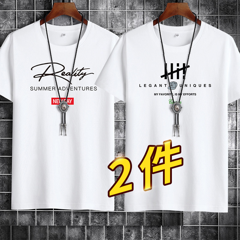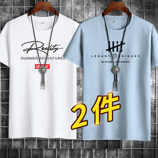 短袖 2件 2025夏季 休闲汗衫 t恤纯棉潮牌上衣学生宽松宽松 男士