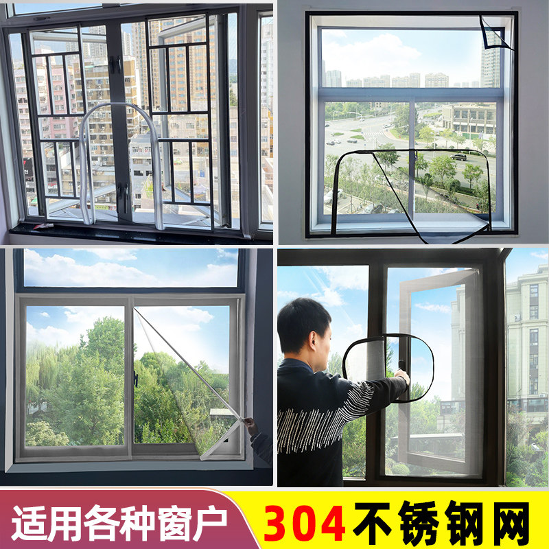 定制高清304不锈钢纱窗防老鼠防蚊防猫抓跳楼魔术贴免打孔金刚网