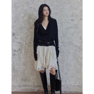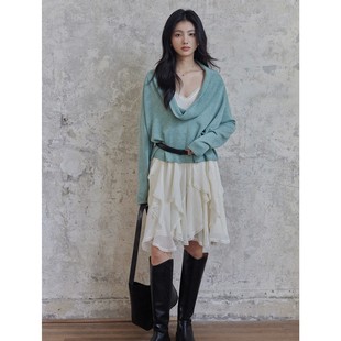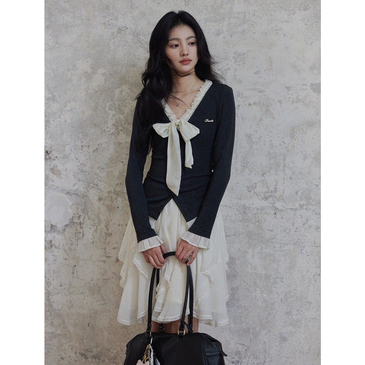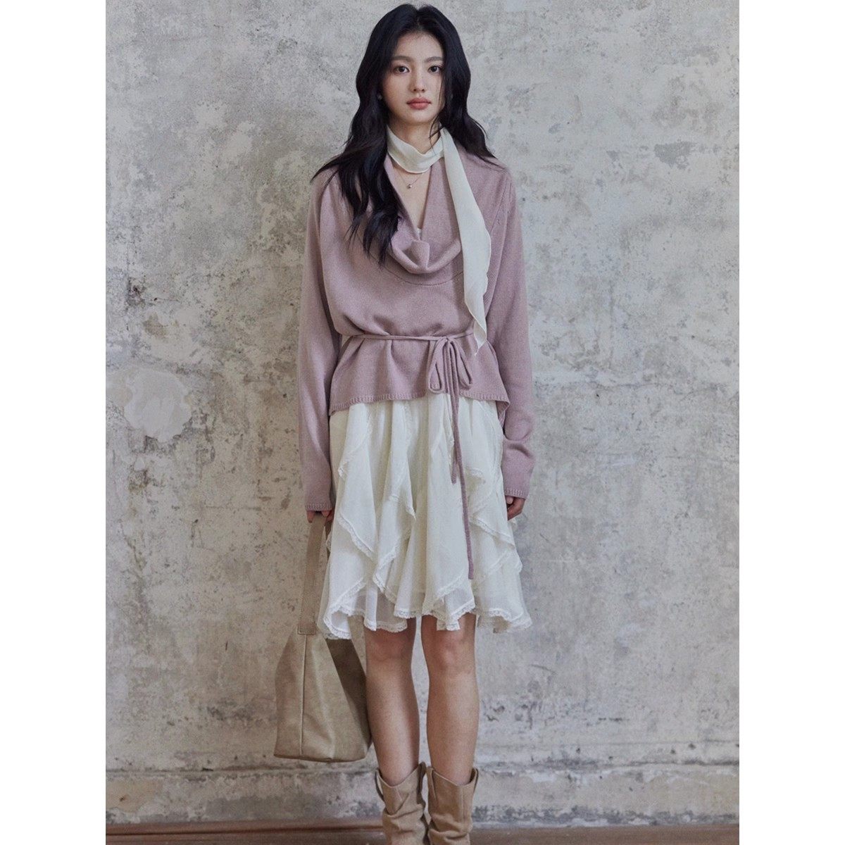 超仙垂感不规则雪纺蕾丝v领吊带连衣裙女秋新款 贰羊设计 夕晴