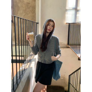 长袖 pusumede 女气质拉链毛衣帽衫 连帽麻花针织开衫 上衣 纯白日记