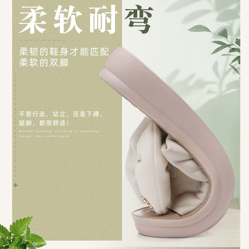 防滑沙滩凉拖鞋 女外穿夏季 8cm厚底增高自留一字拖鞋 颗粒按摩底