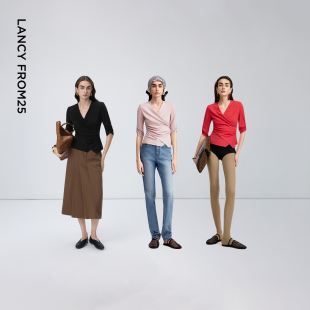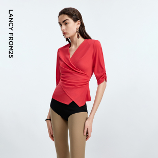 朗姿三醋酸Basic衣橱 衬衫 v领短袖 通勤时尚 女 上衣衬衣春秋新款