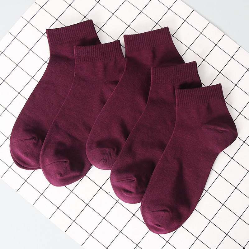 真维斯酒红色男士 纯色 袜子本命年男短袜抑菌防臭棉袜马年暗红男款