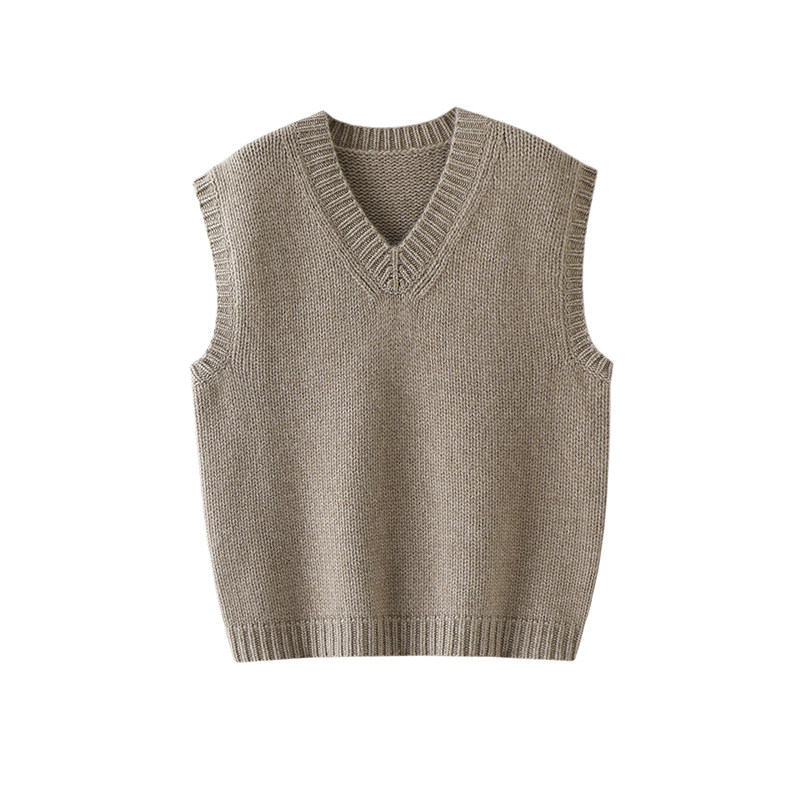 好穿不挑人 马甲针织坎肩 粗棒针加厚V领山羊绒背心女纯羊绒衫