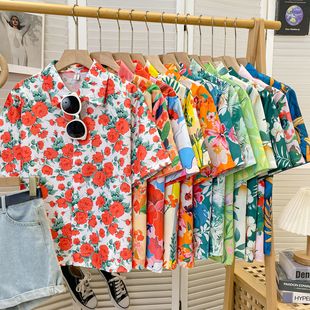 情侣装 港风复古短袖 男女款 沙滩个性 旅游网红表演节目拍照 花衬衫