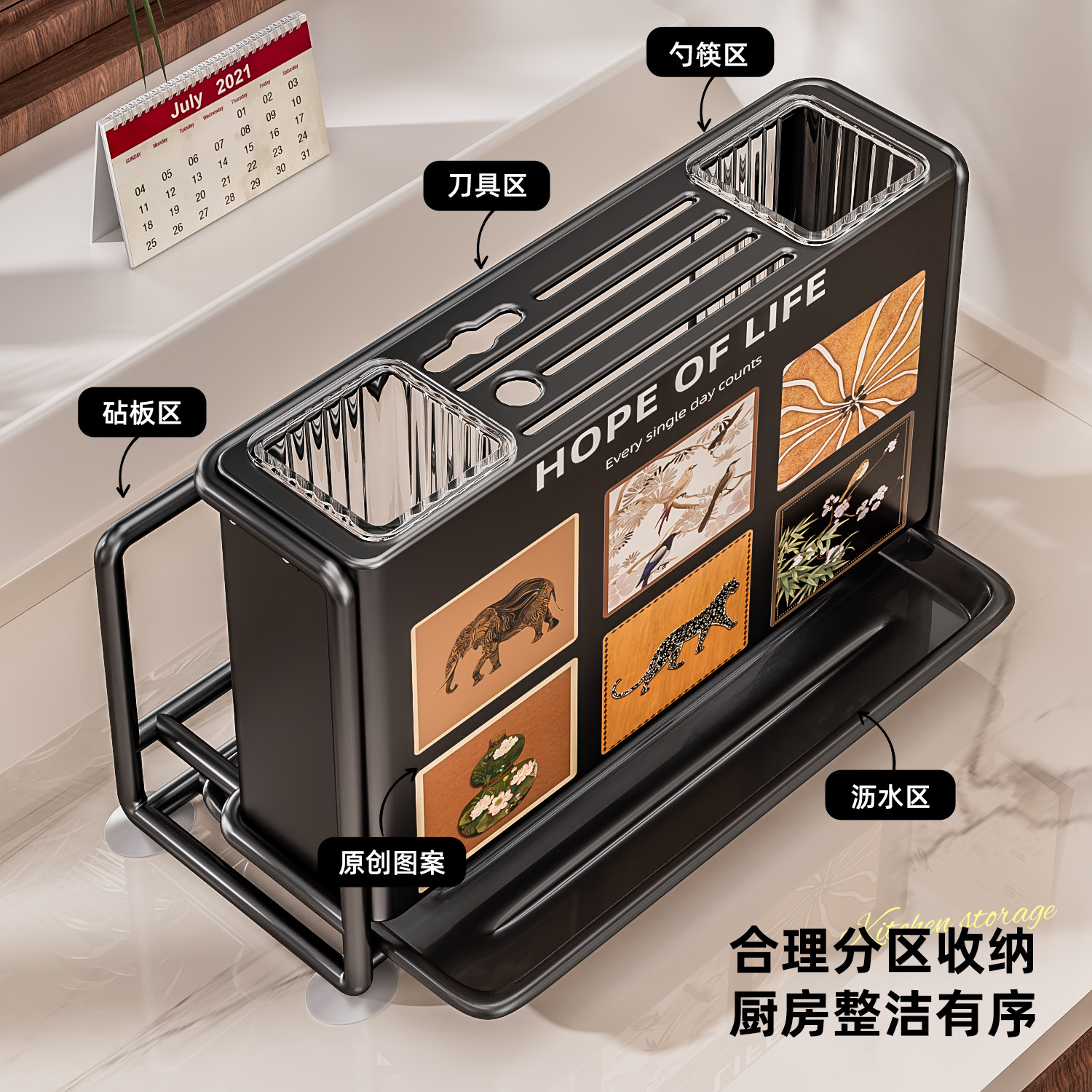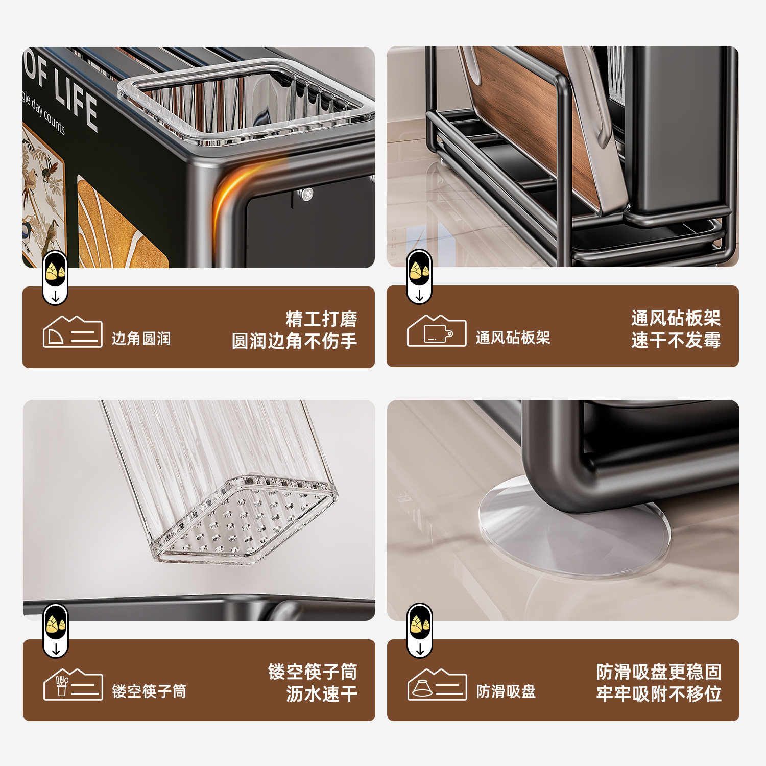 2025新款 不锈钢厨房刀架置物架菜板菜刀架筷笼一体砧板刀具收纳架