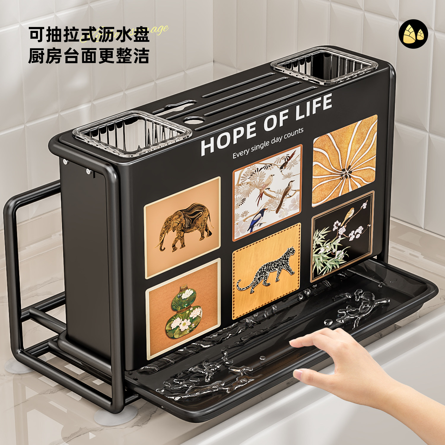 德国新款 不锈钢厨房刀架置物架多功能菜刀具筷子筒筷笼一体收纳盒