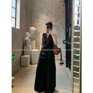 背心透气修身 纽结立体V领收腰无袖 上衣女夏 棉麻随性感 GV大白哥