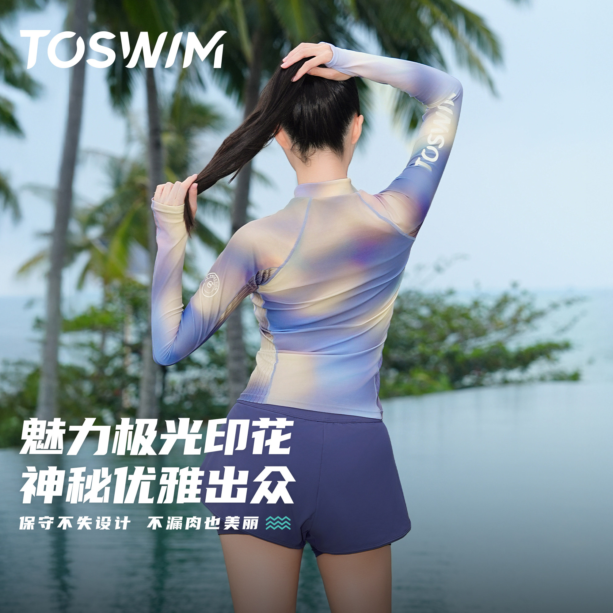 女士大码 TOSWIM分体泳衣26新款 套装 短裤 微胖 温泉海边度假防晒长袖