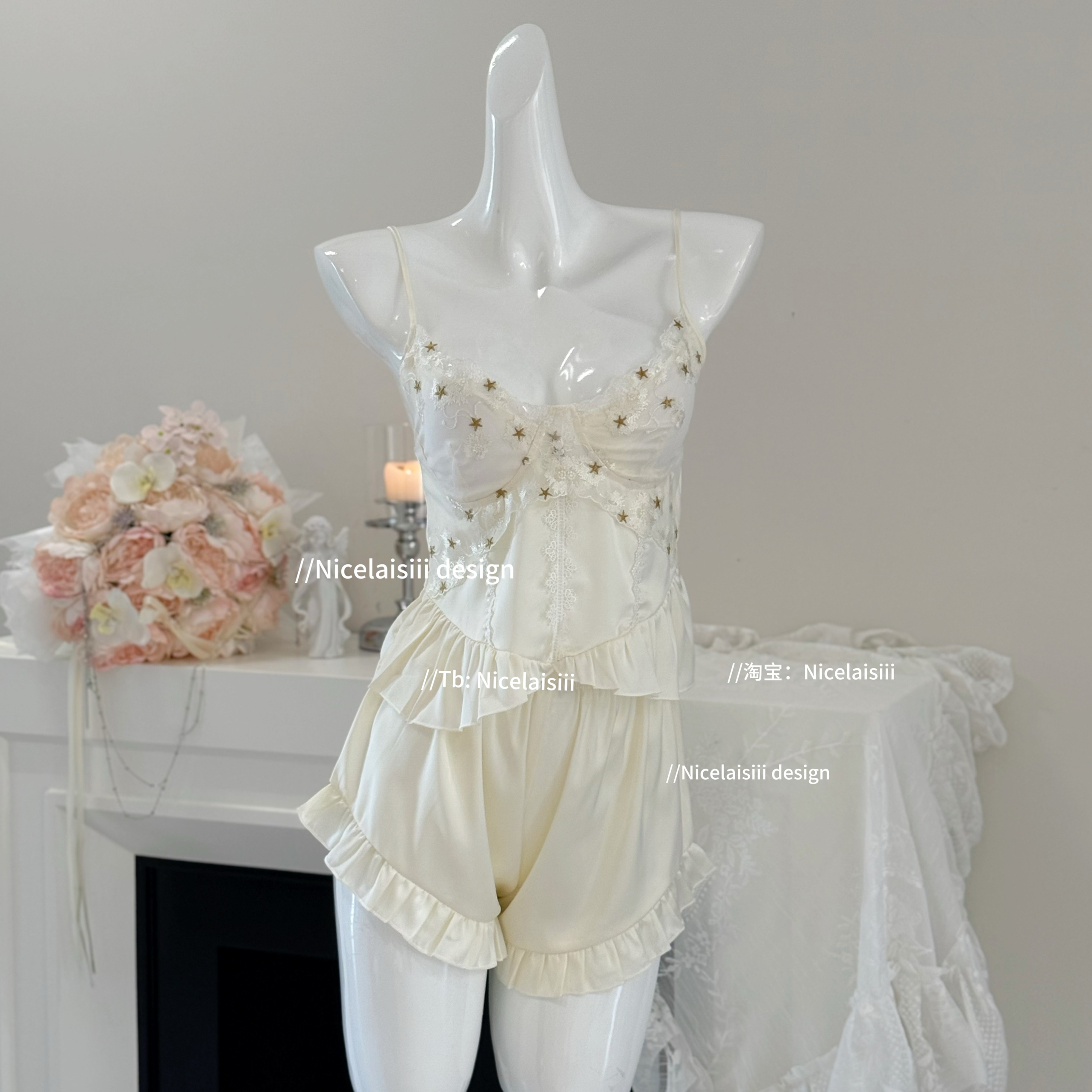 睡衣套装 冰丝吊带短裤 甜美丝绸家居服 纯欲法式 Nicelaisiii小奶芙