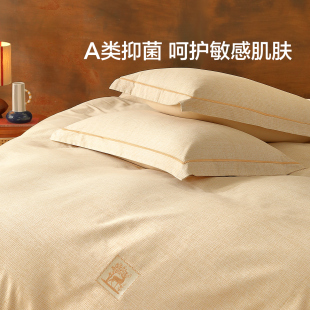 水星家纺全棉磨毛四件套纯棉A类抗菌套件简约床单被套家用床品
