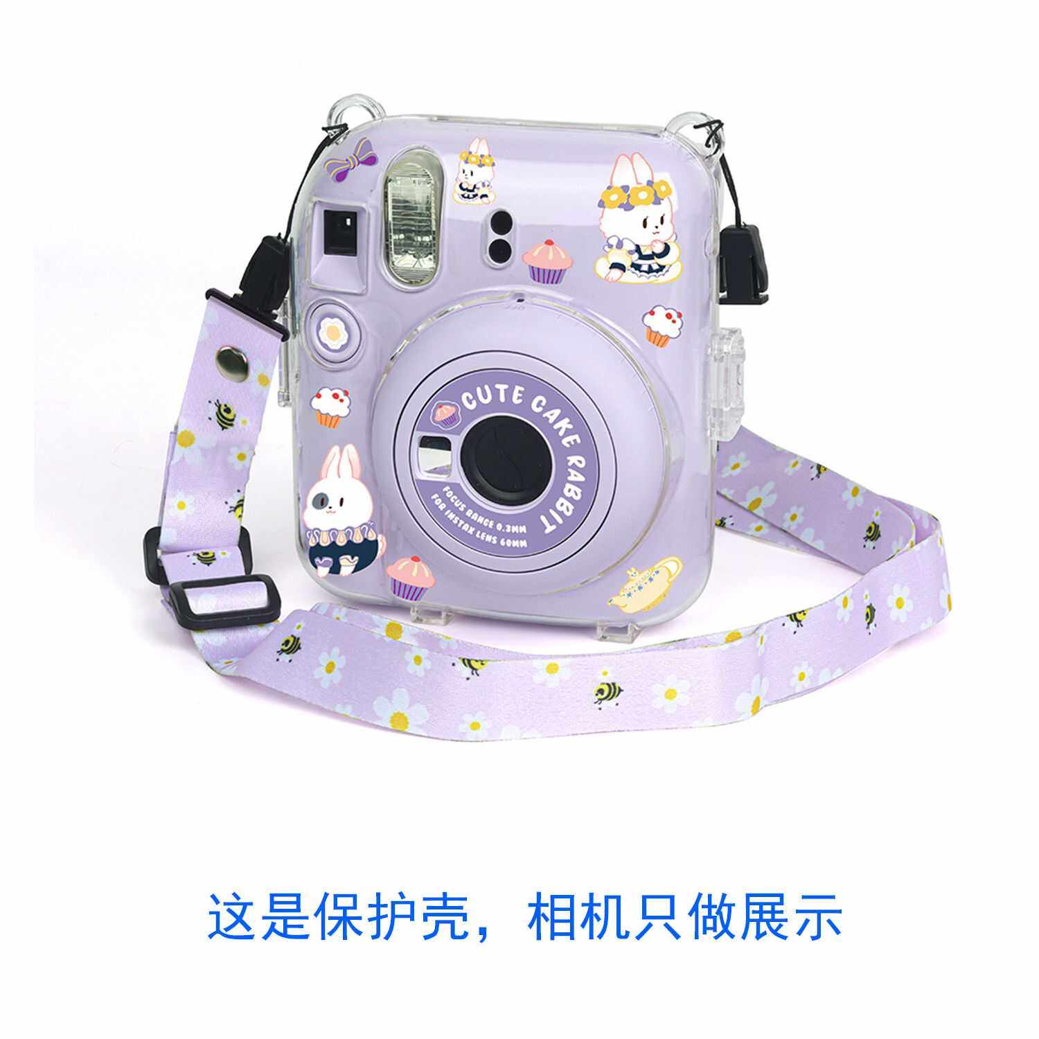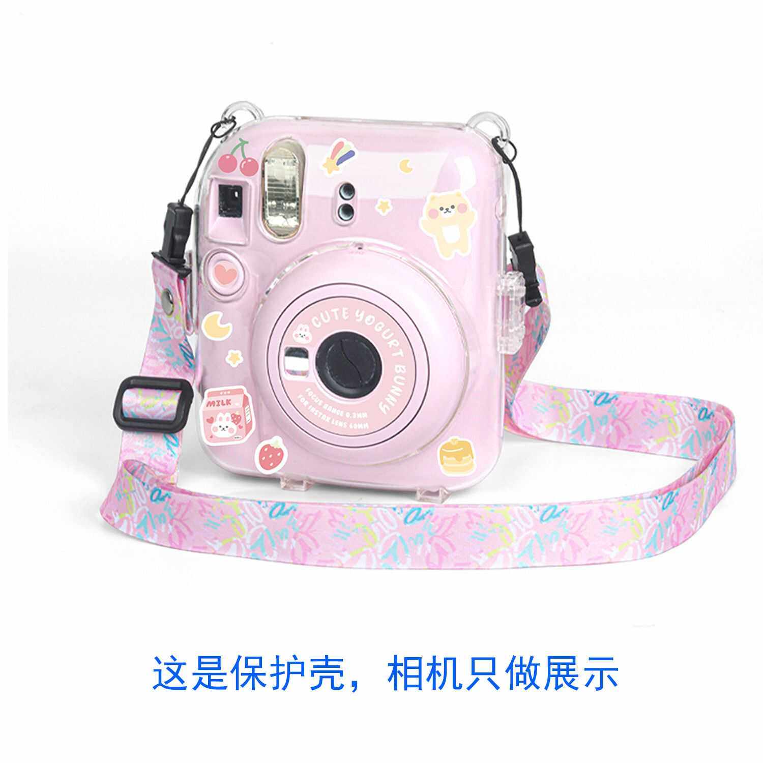 拍立得保护套mini12保护壳保护套mini12透明壳水晶壳肩带贴纸