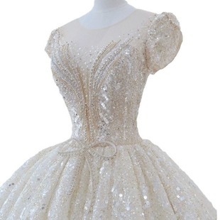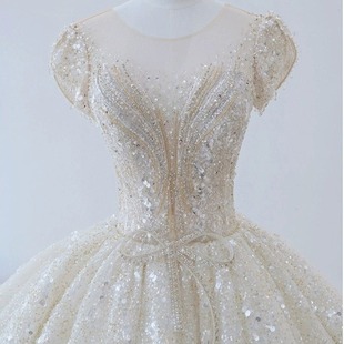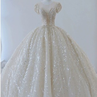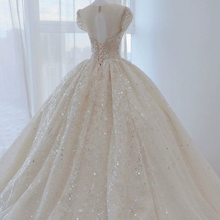 宫廷风迎宾仪式 婚纱新娘2025新款 长袖 V领重工奢华冬季 纱 主纱法式
