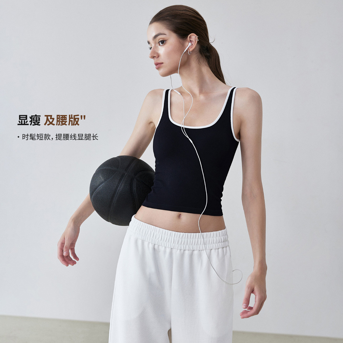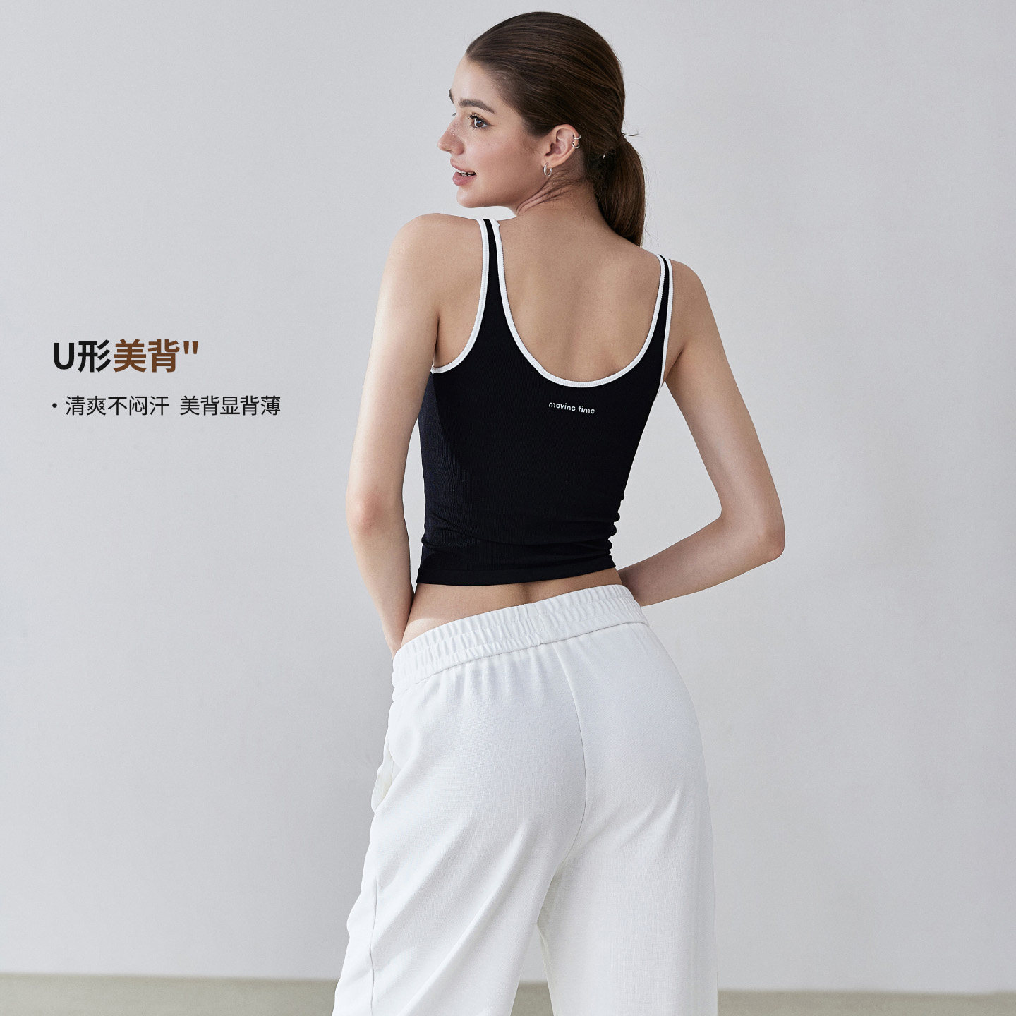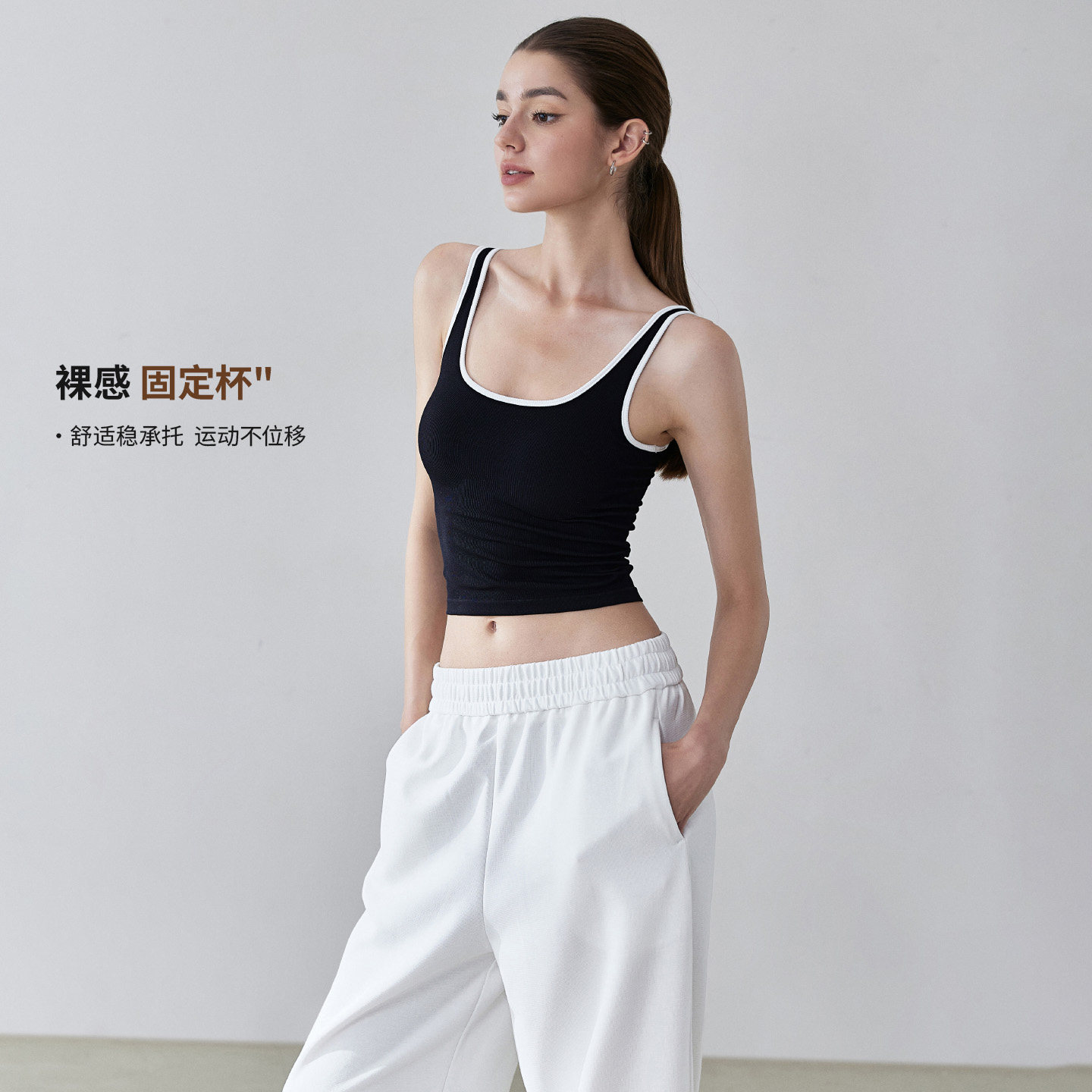 movingtime运动背心女撞色一体固定杯瑜伽服吊带文胸健身上衣显瘦