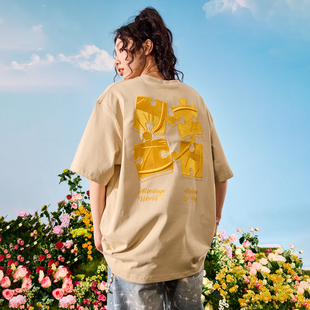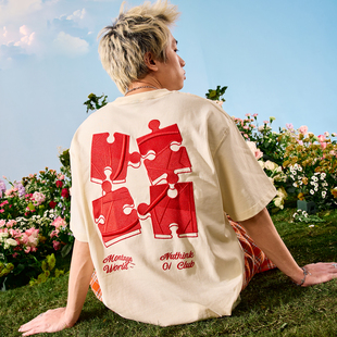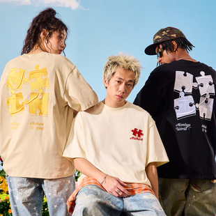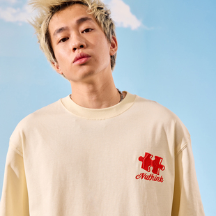 情侣男女2025夏新款 潮牌宽松半袖 T恤美式 Nuthink重磅刺绣拼图短袖