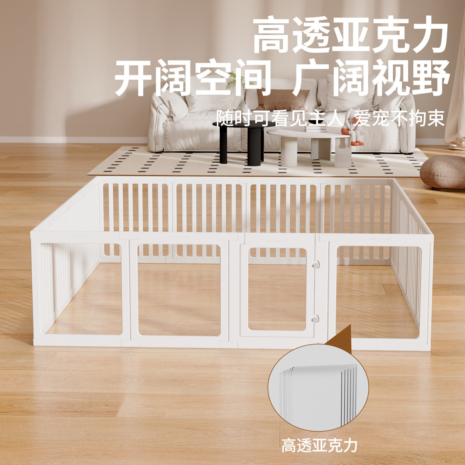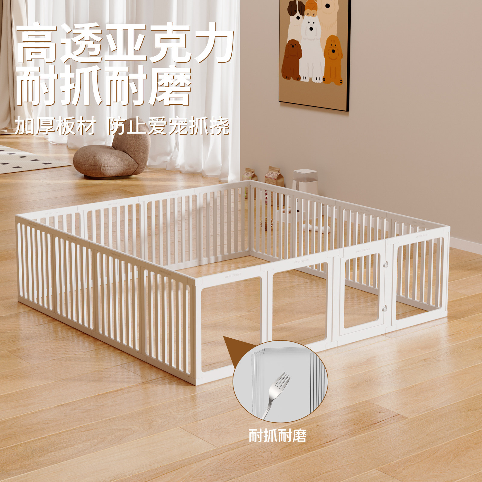 狗笼子狗围栏室内栅栏防护栏宠物小型犬家用亚克力透明防越狱狗窝