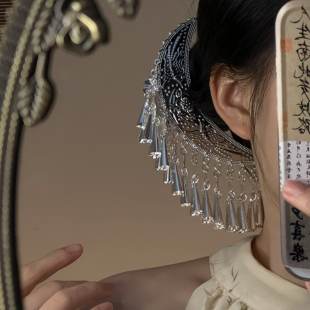 银铃坠梦 民族风头饰月牙流苏u型发簪女盘发苗族银色发钗簪子发饰