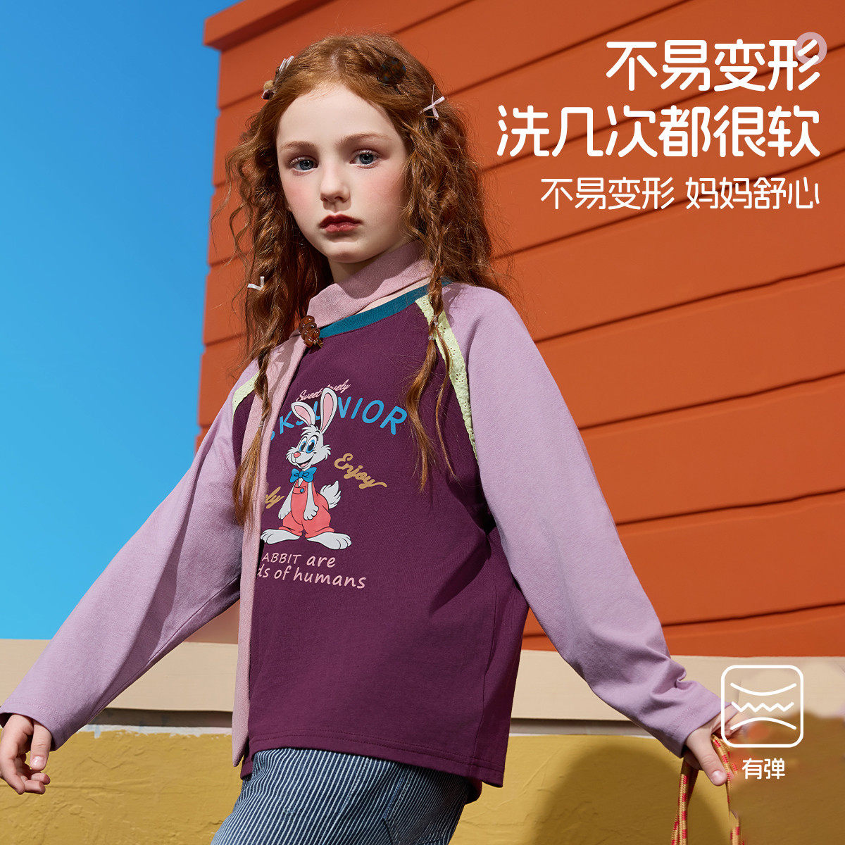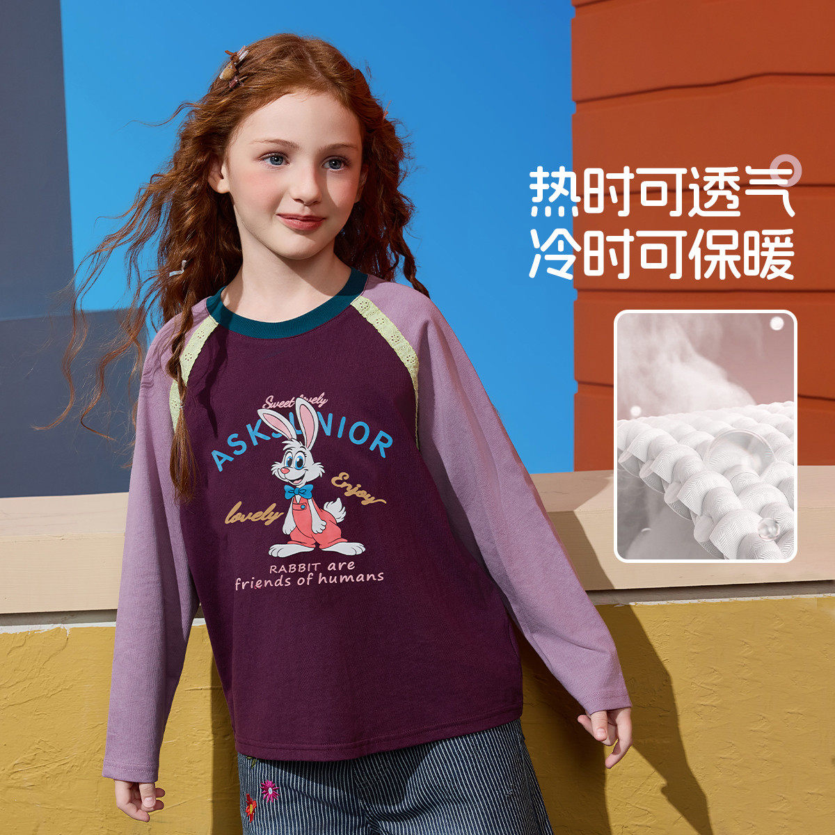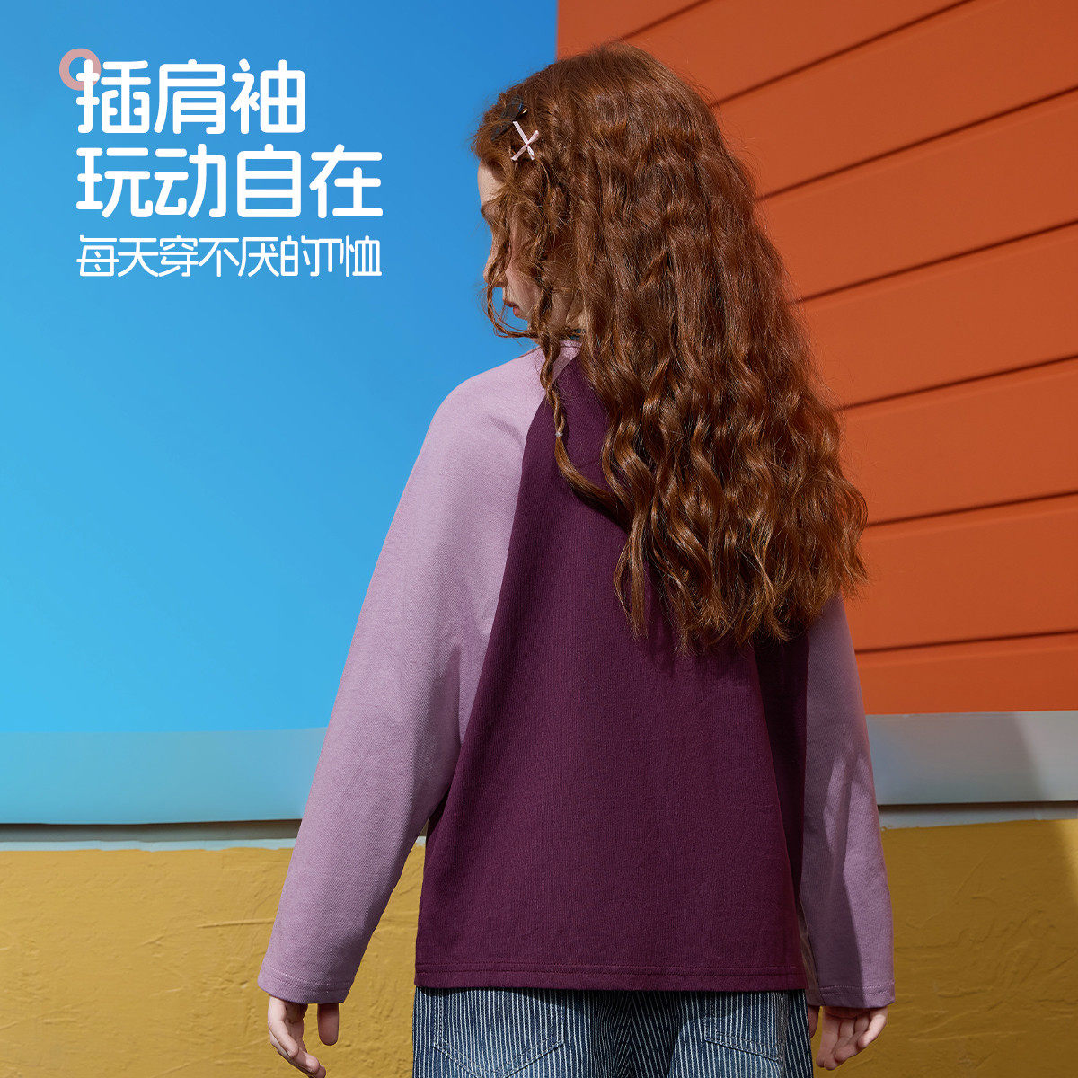 打底衫 ask女童T恤25秋季 中大童撞色拼接儿童圆领长袖