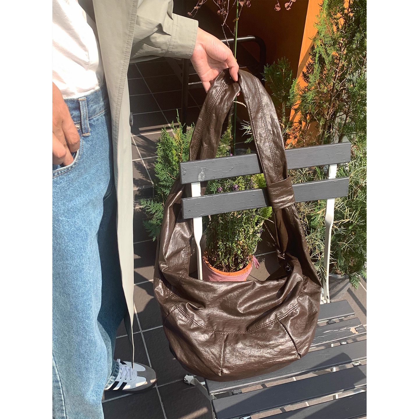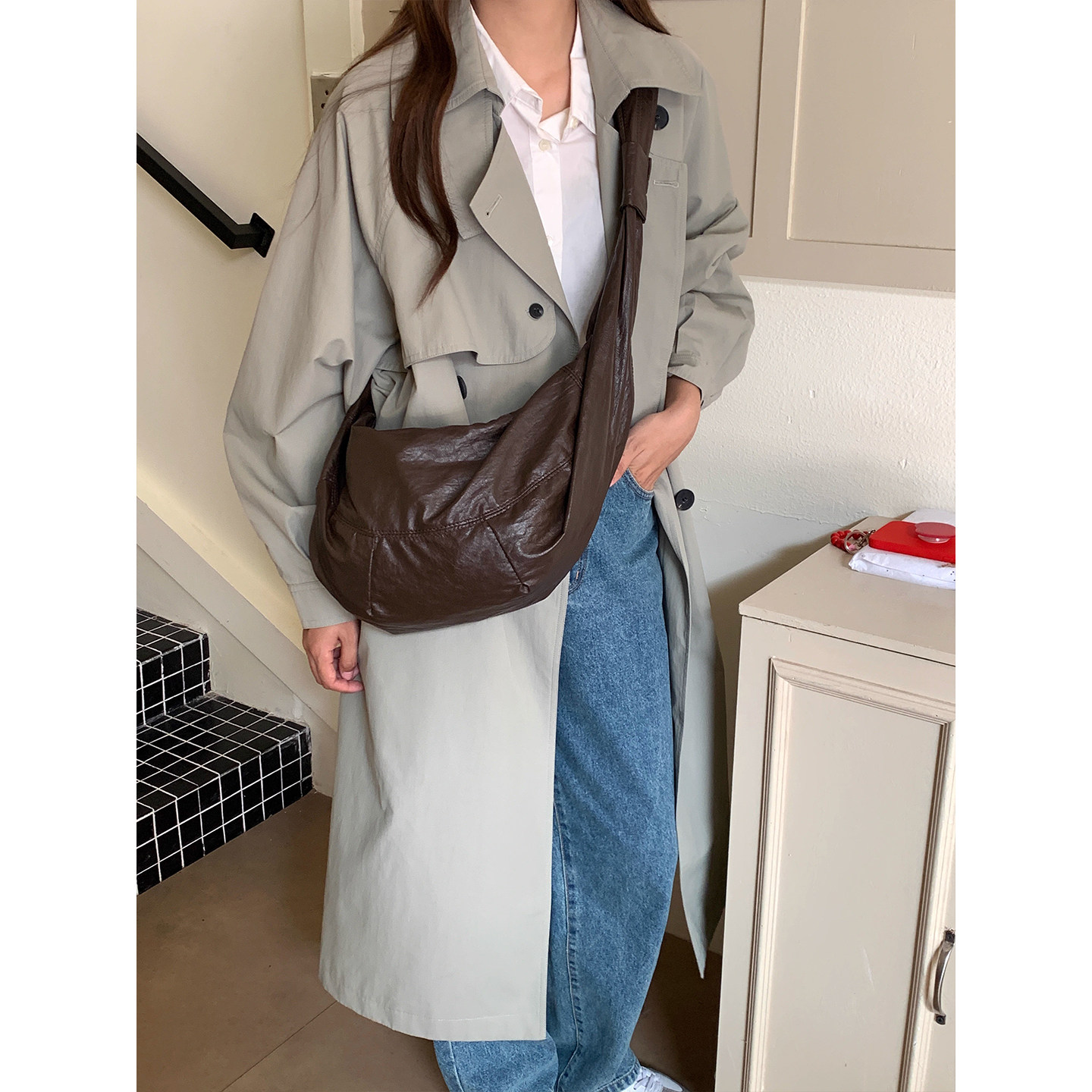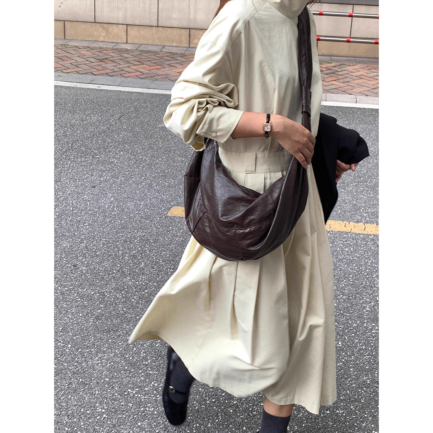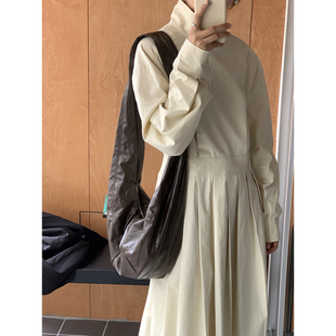 芝士商店 棕色大容量牛角包女秋冬中古斜挎包饺子包百搭单肩包包