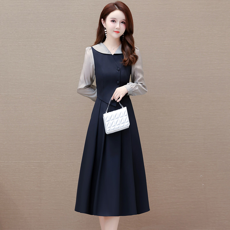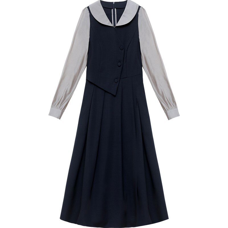 气质b法式 高端秋季 长袖 新款 显瘦妈妈假两件 连衣裙女2025秋季 新品
