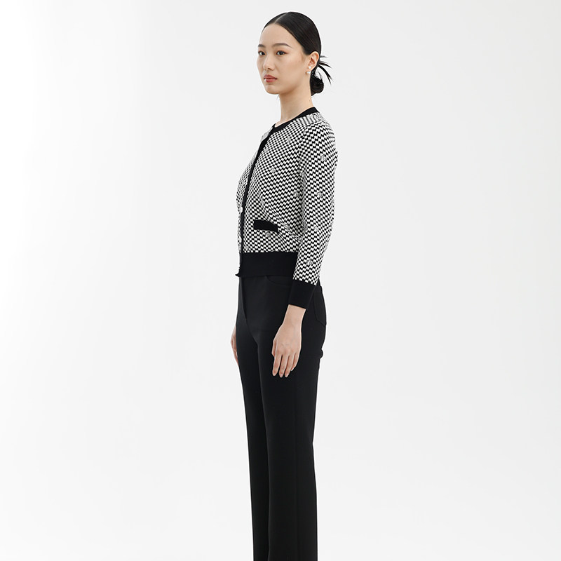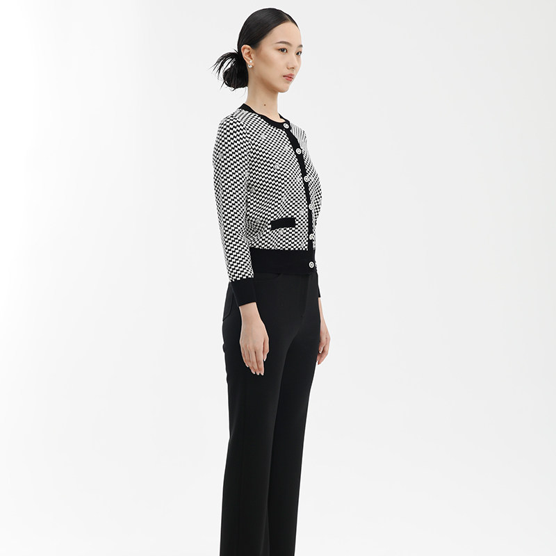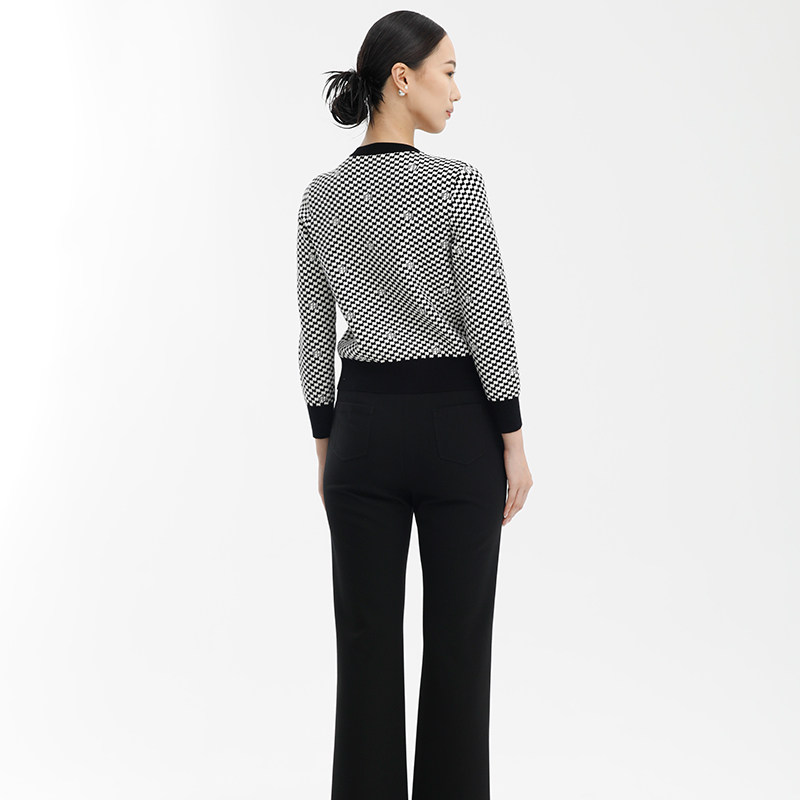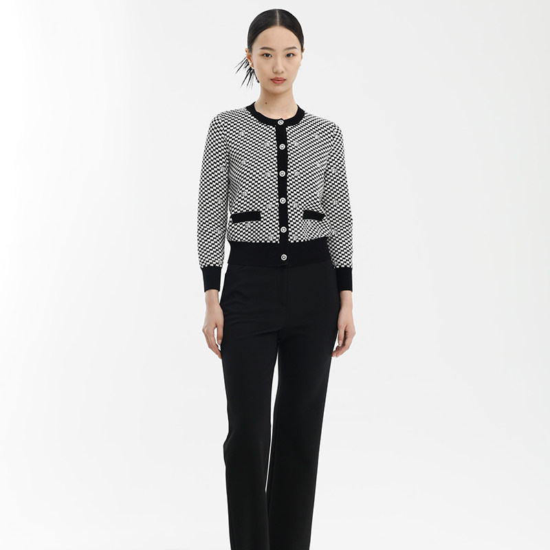 女格子时尚 OL小香风针织开衫 大气小众设计感上衣 秋季 戴布拉芬新款