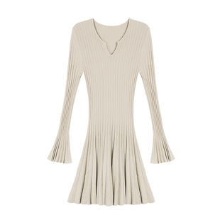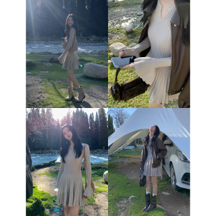 V领长袖 新款 设计感收腰显瘦气质短裙 针织连衣裙女秋季 MULVAN
