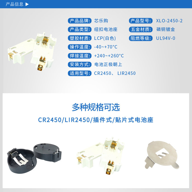 电池扣五金弹片插件贴片配件CR2450纽扣电池座3v系列LIR2450通用