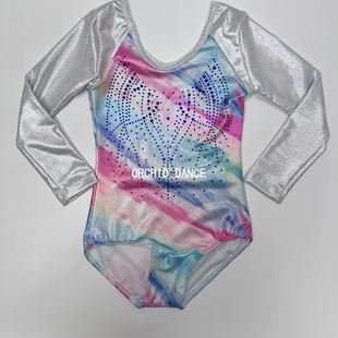 镶钻长袖 连体三角体操训练服舞蹈连体练功服小学生团体比赛演出服