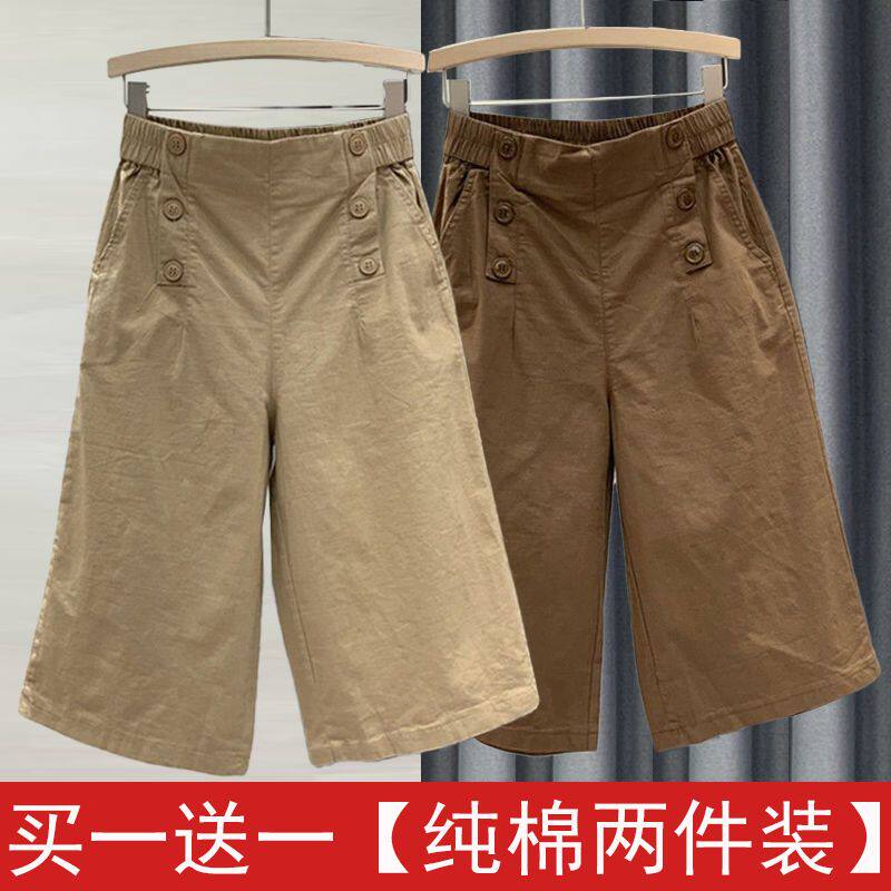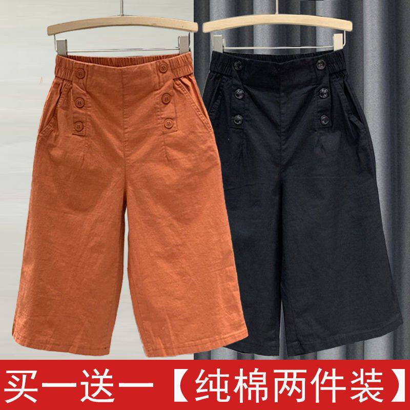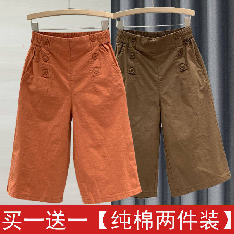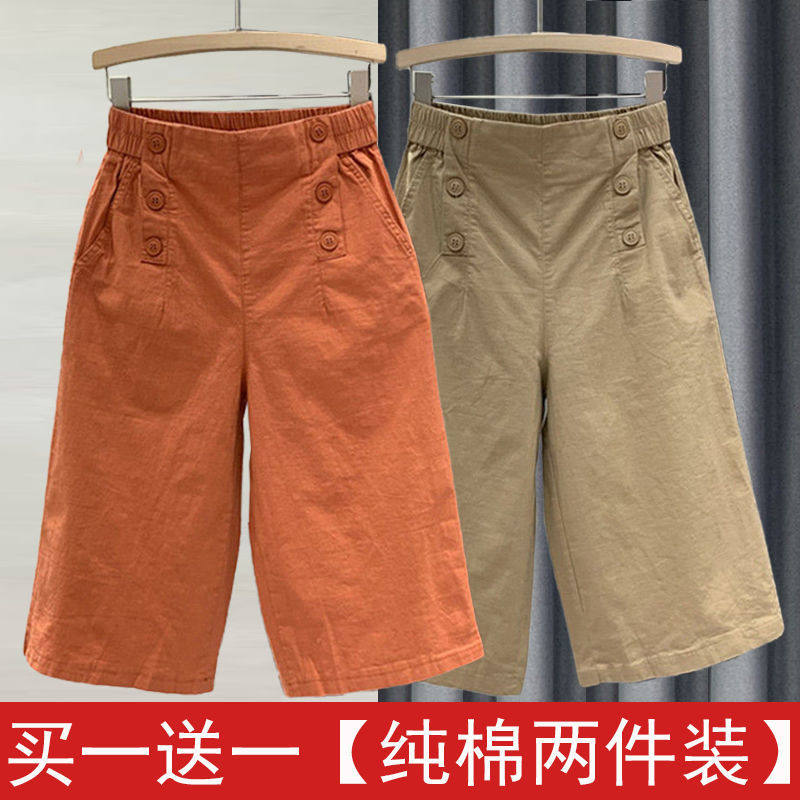 女夏季 显瘦休闲裤 新款 宽松阔腿裤 子潮 高腰哈伦裤 纯棉松紧腰七分裤