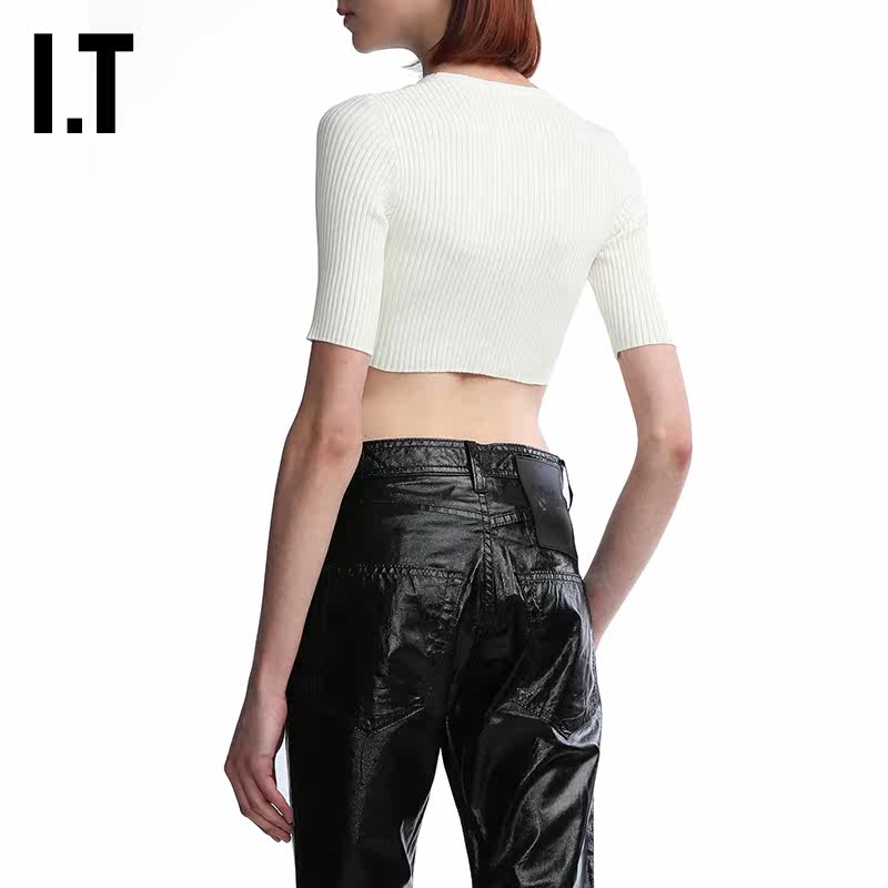 白色长袖 设计感一粒纽半开领显瘦遮肉纯棉上衣 t恤女2025早秋新款