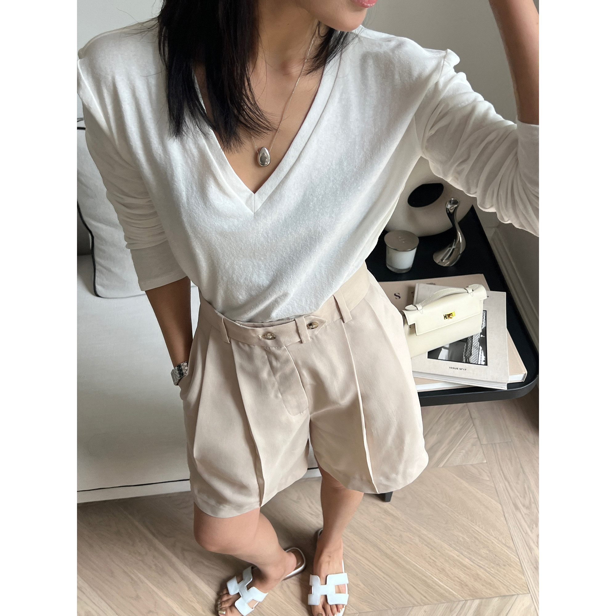 短裤 SOTHEA 女百慕大宽松显瘦西装 百搭通勤双褶休闲裤 时髦夏日