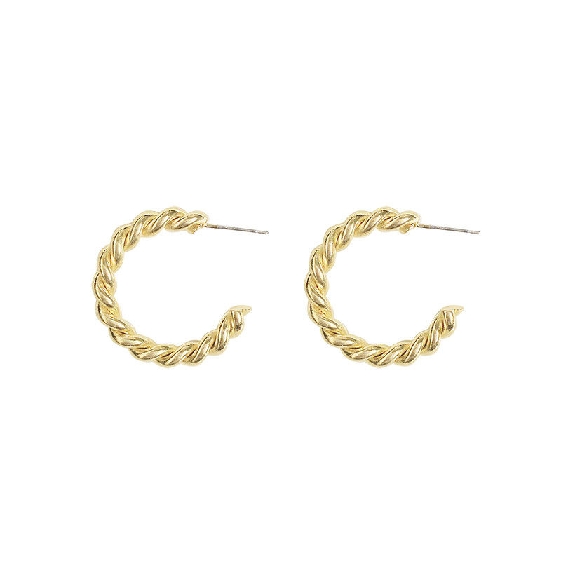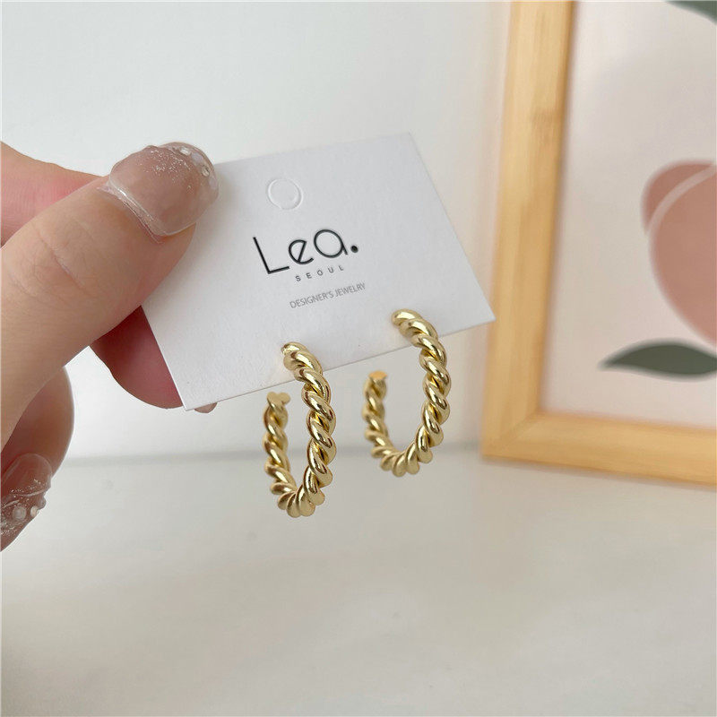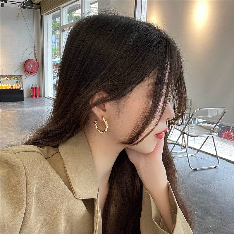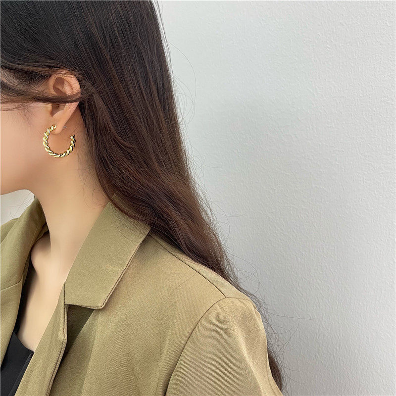 S925银针 欧美金属感潮流麻花耳钉小众轻奢ins风百搭通勤高级耳环