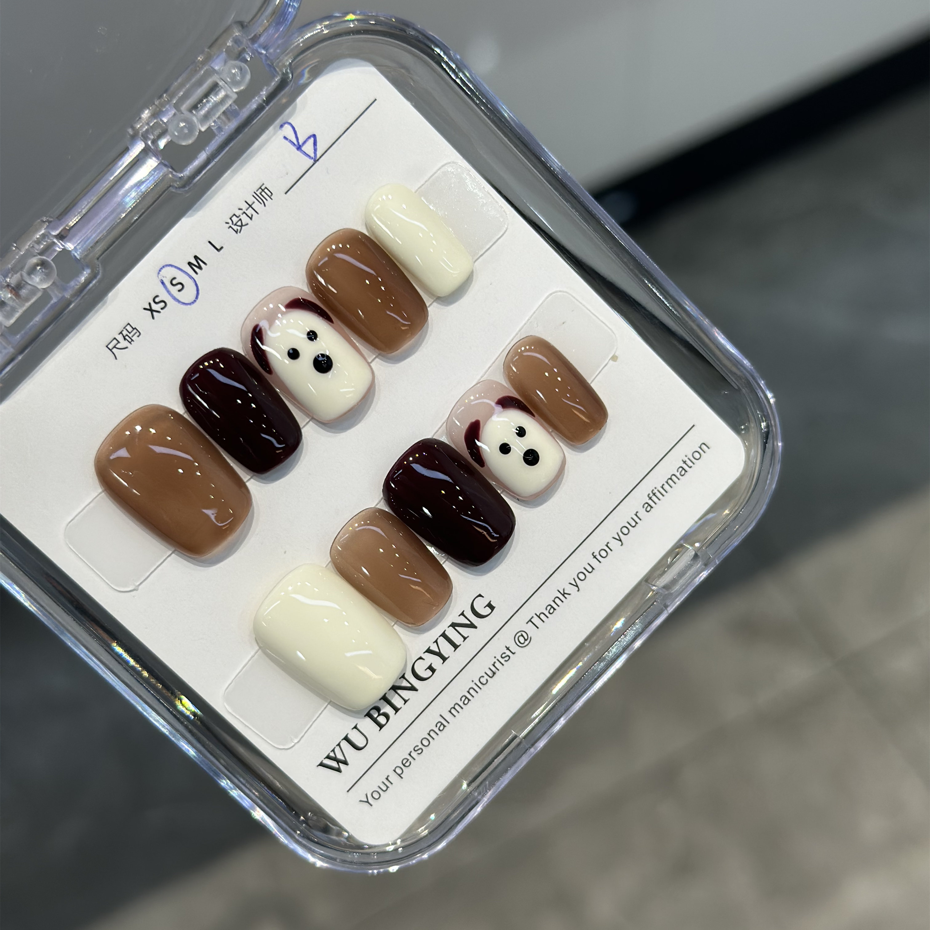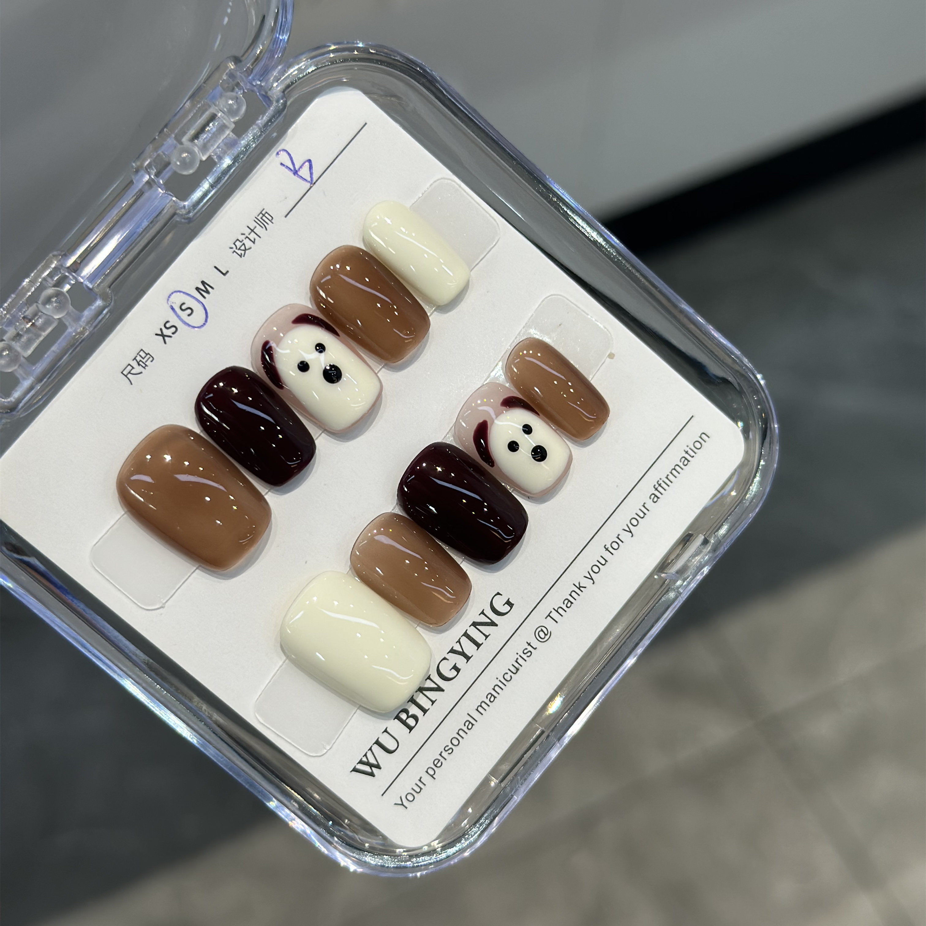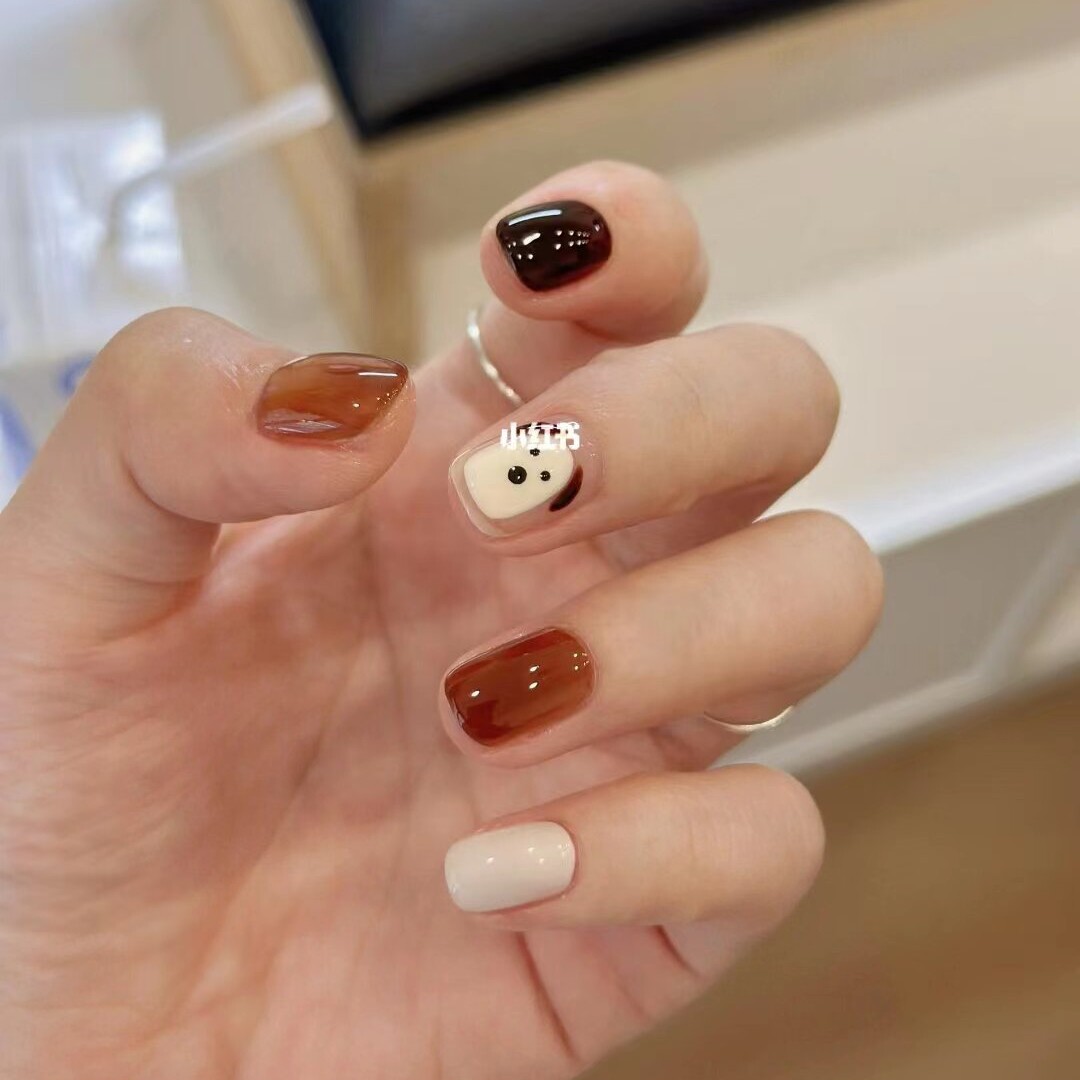 纯手工定制穿戴甲贴片假指甲美拉德狗狗可拆卸显白可爱俏皮孕妇带