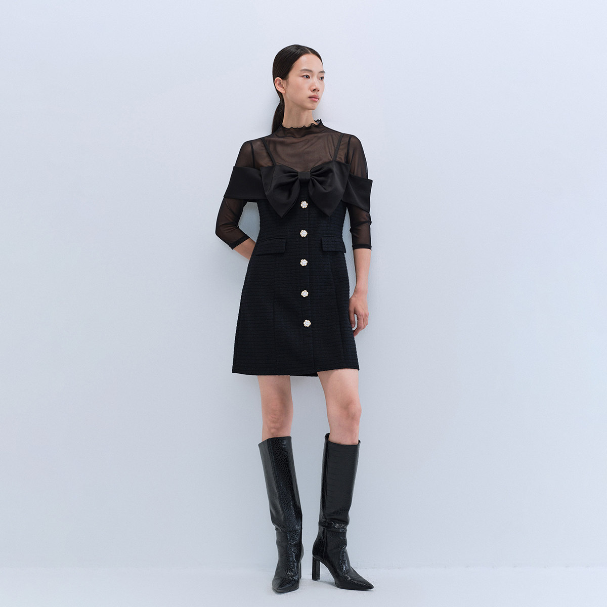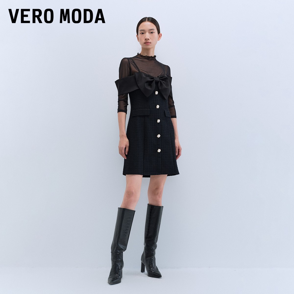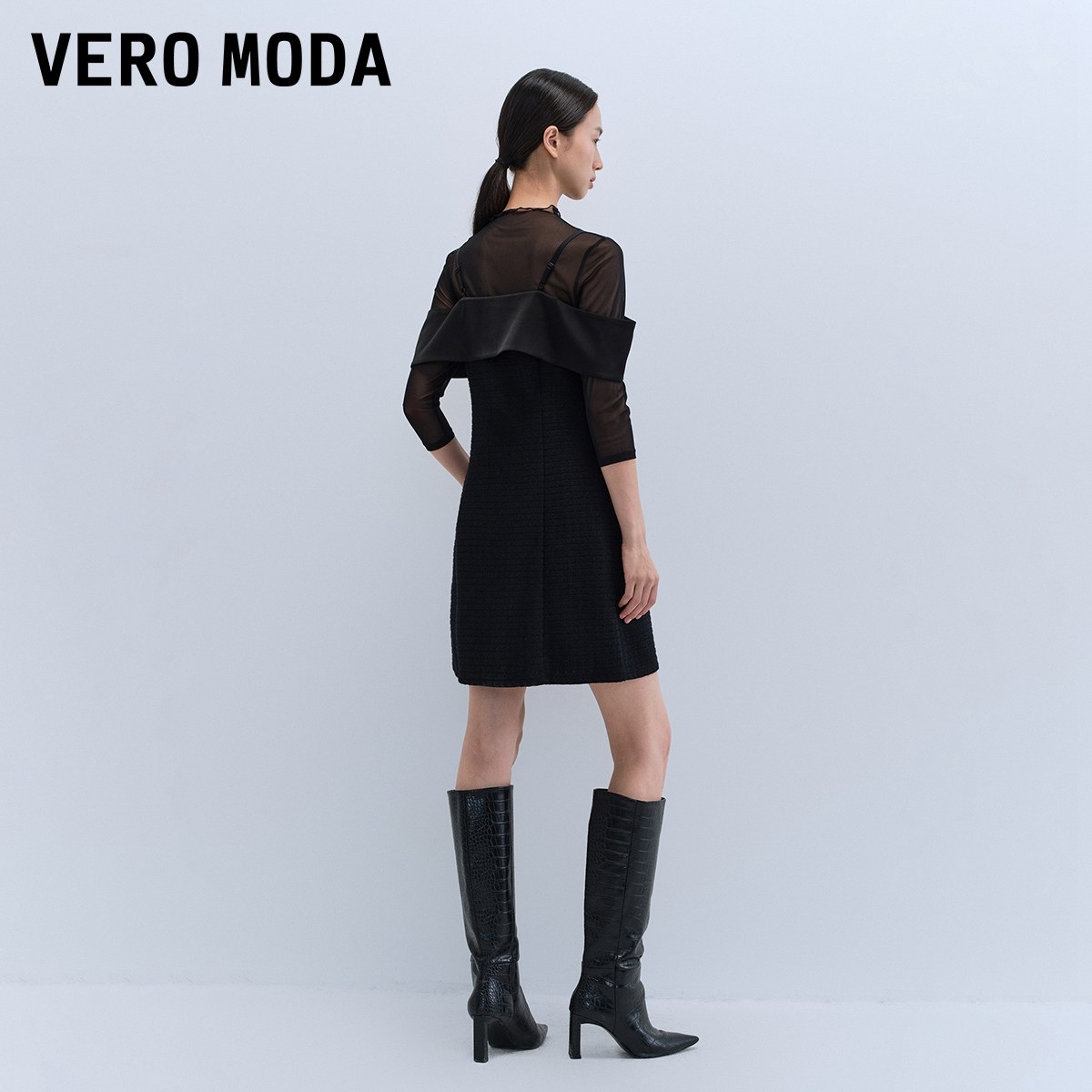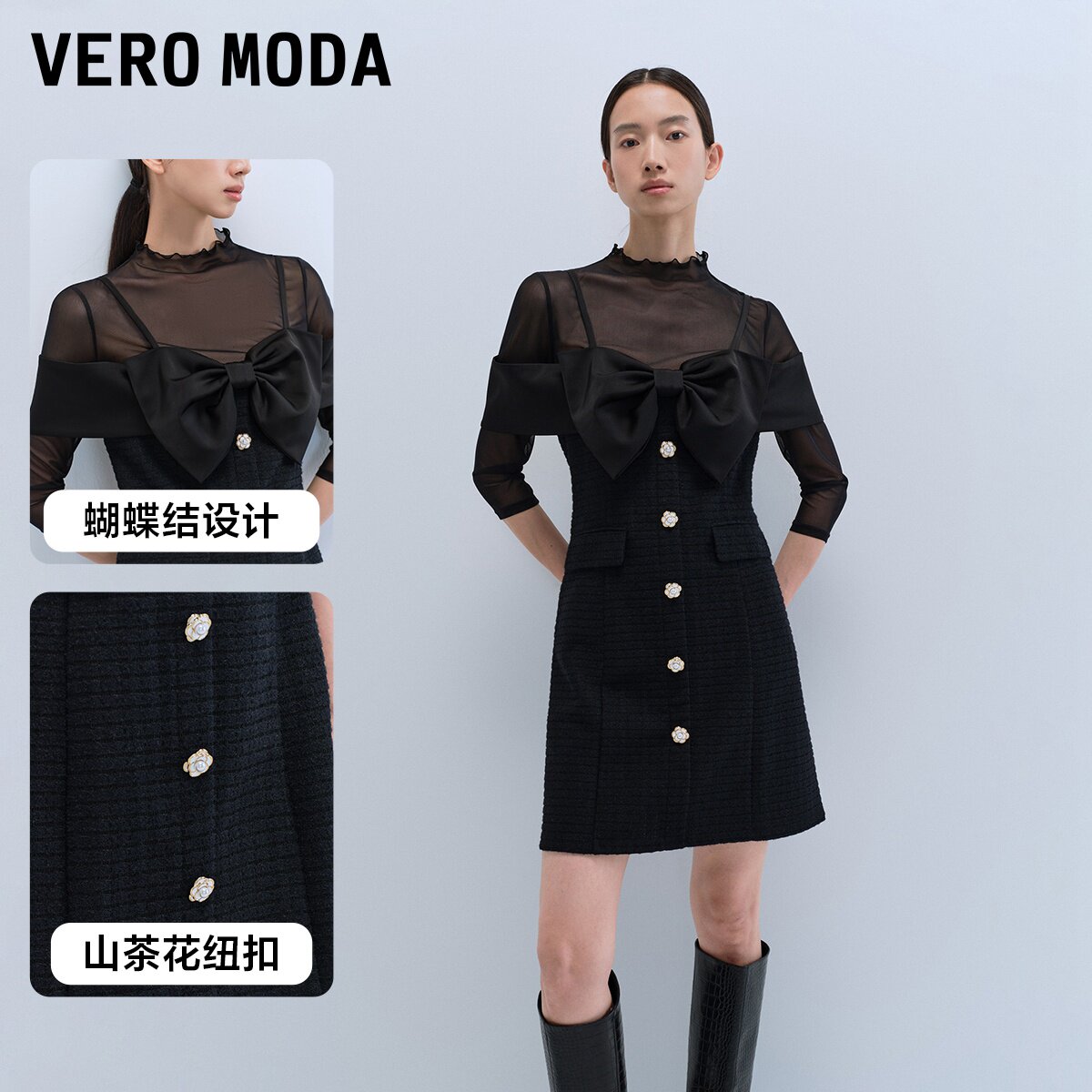 tq区绫致VeroModa连衣裙25半透打底吊带七分袖 粗花呢套裙