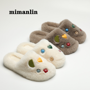 网红室内居家防滑软底毛绒包头棉拖 时尚 纽扣毛毛拖鞋 女外穿秋冬季