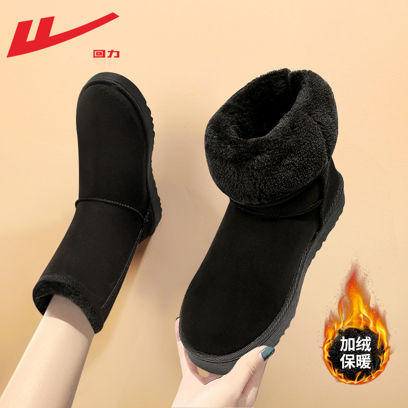 女 皮毛一体中筒靴加绒加厚外穿雪地棉鞋 回力雪地靴女冬季 2025新款