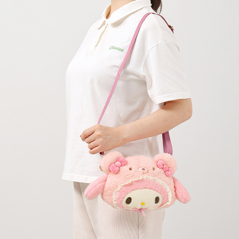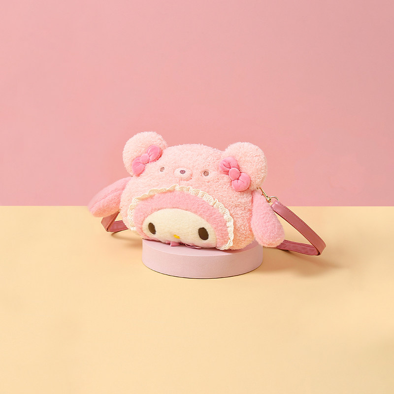 日本sanrio三丽鸥周边正版 拿铁bb美乐蒂毛绒单肩包斜挎包小包包