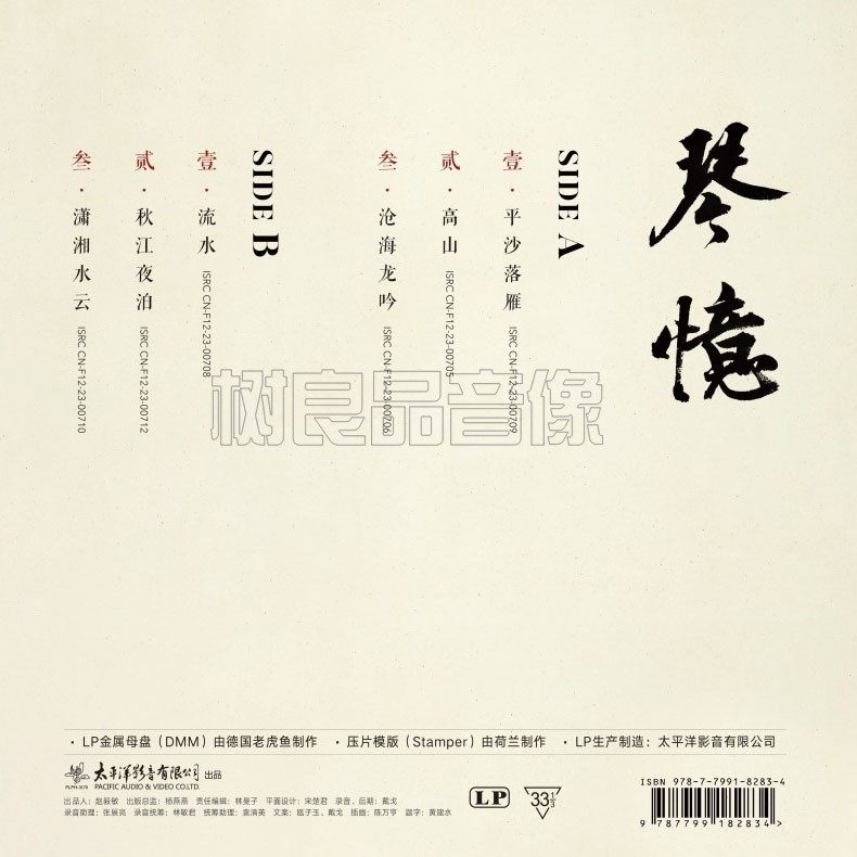 青玉翡翠胶彩胶 正版 李乐园古琴演奏专辑 琴忆 LP黑胶唱片 太平洋