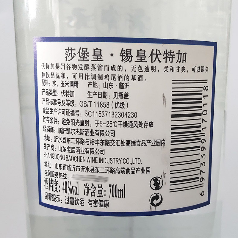 vodka莎堡皇锡皇伏特加40度700ml 瓶